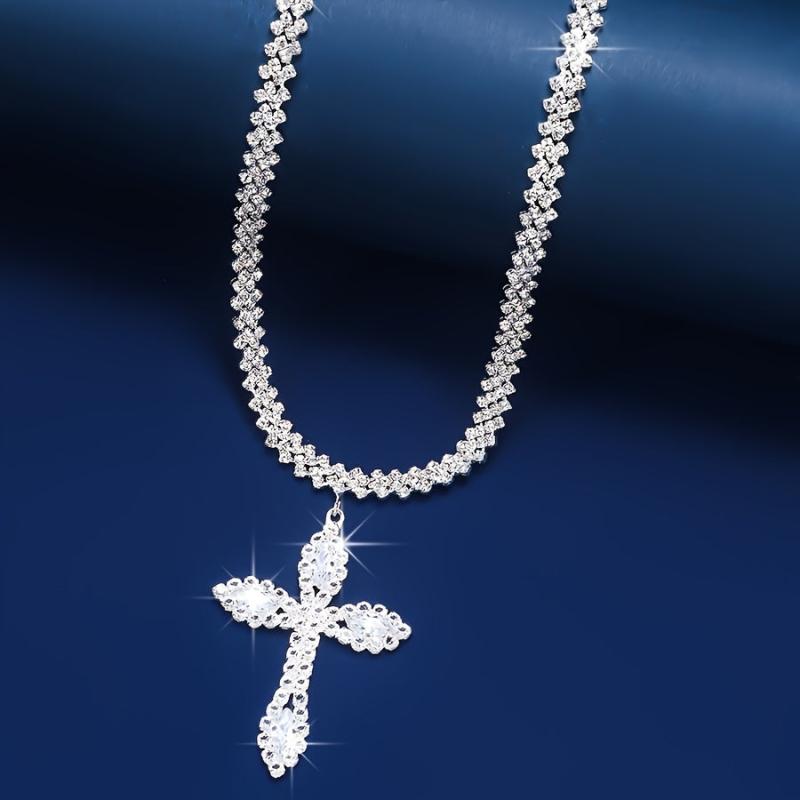 Elegant and versatile, this dazzling cross pendant necklace is perfect for daily wear or special occasions. A stunning accessory that adds a touch of sparkle to any outfit.