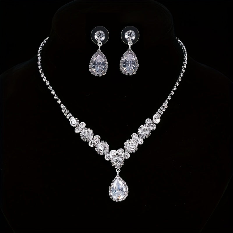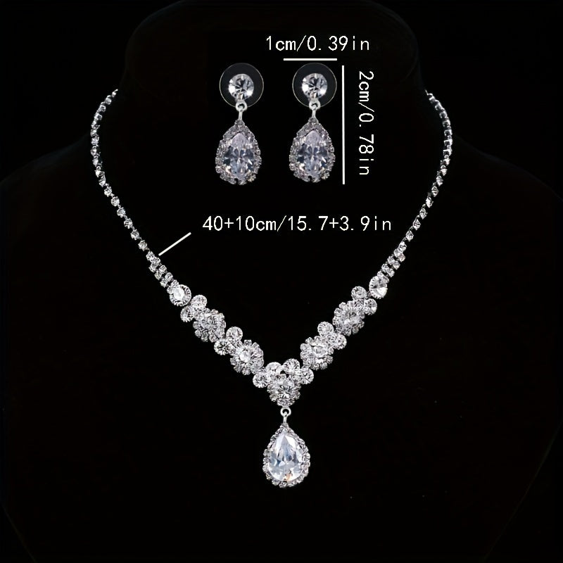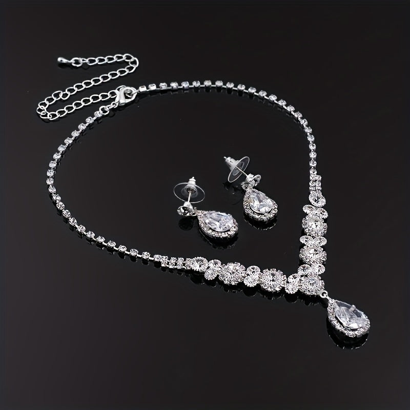 This stunning jewelry set features rhinestone accessories with water drop design. Perfect for adding sparkle to your outfit.