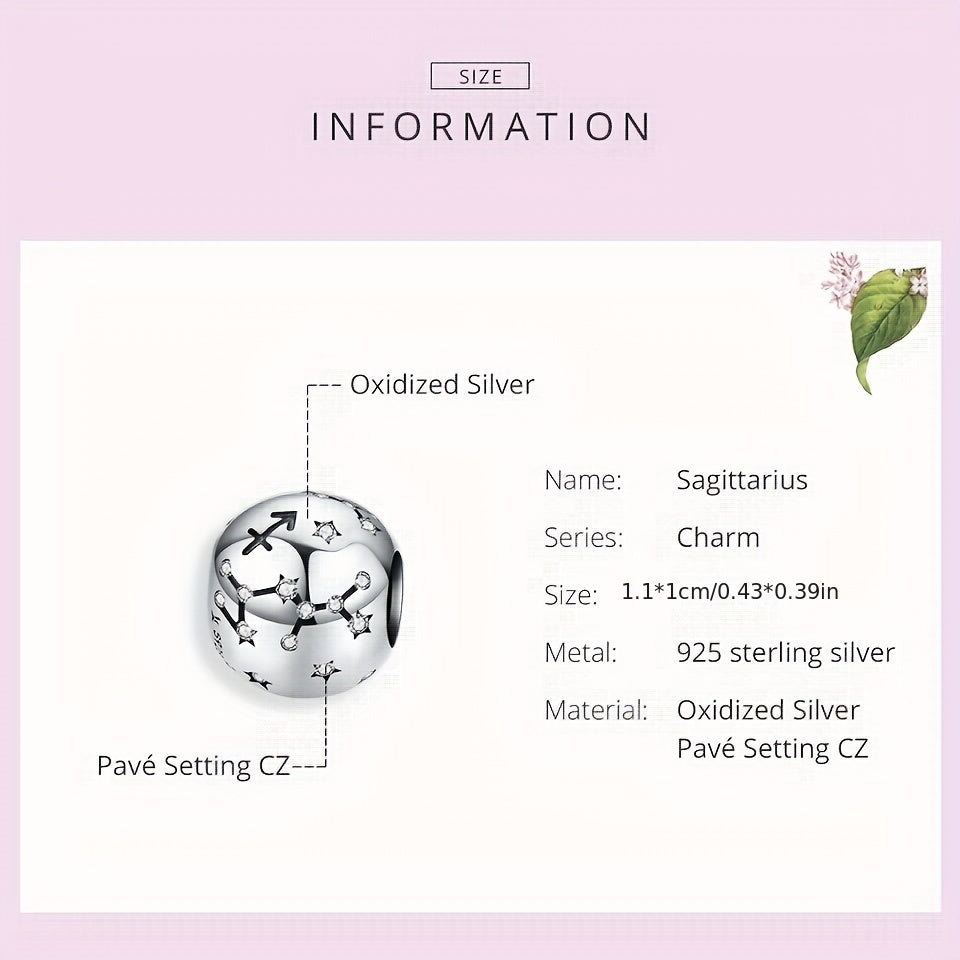 This stunning rhinestone decor bead features the 12 constellations design, crafted in 925 silver. Perfect for creating your own unique bracelet or as a birthday gift. Chain not included.