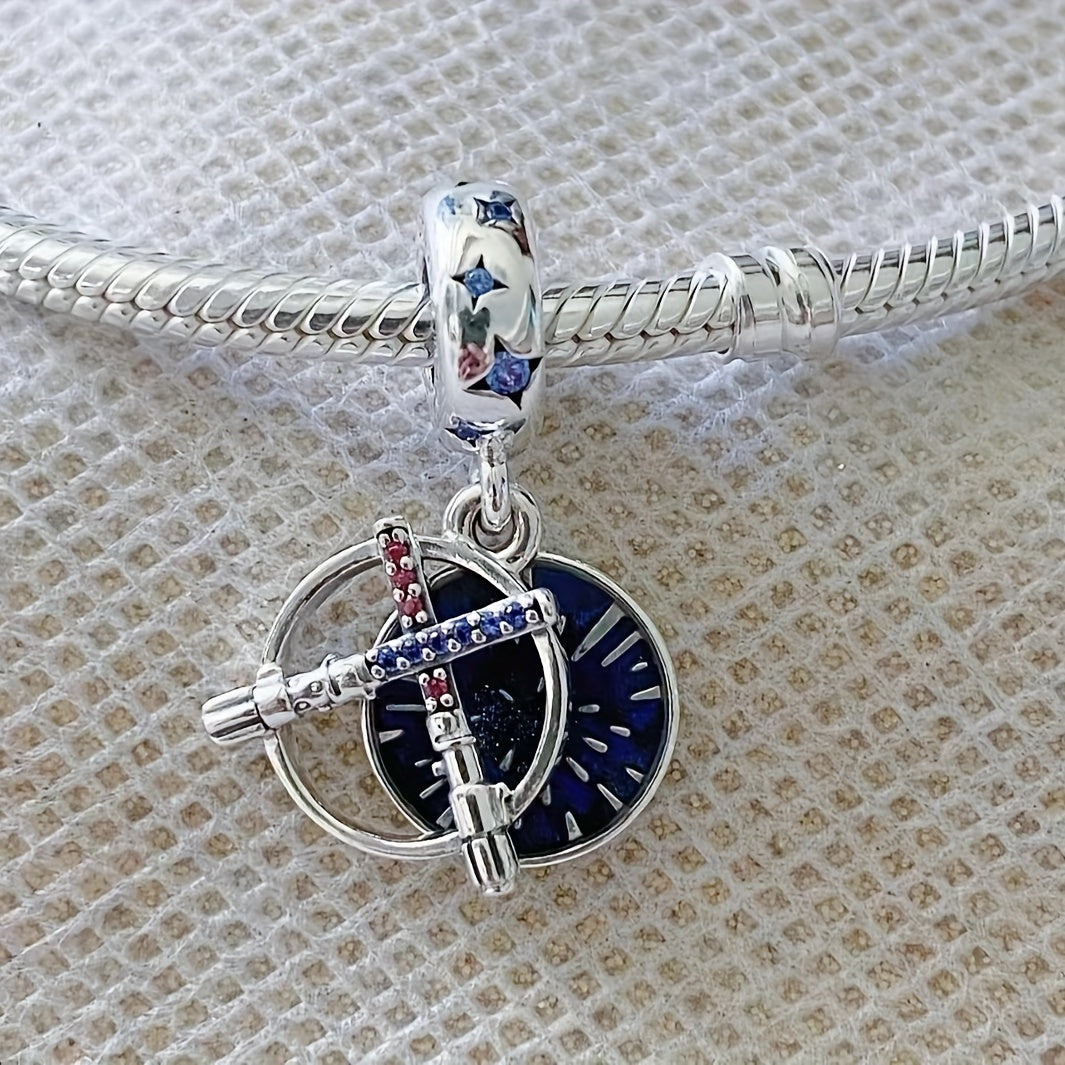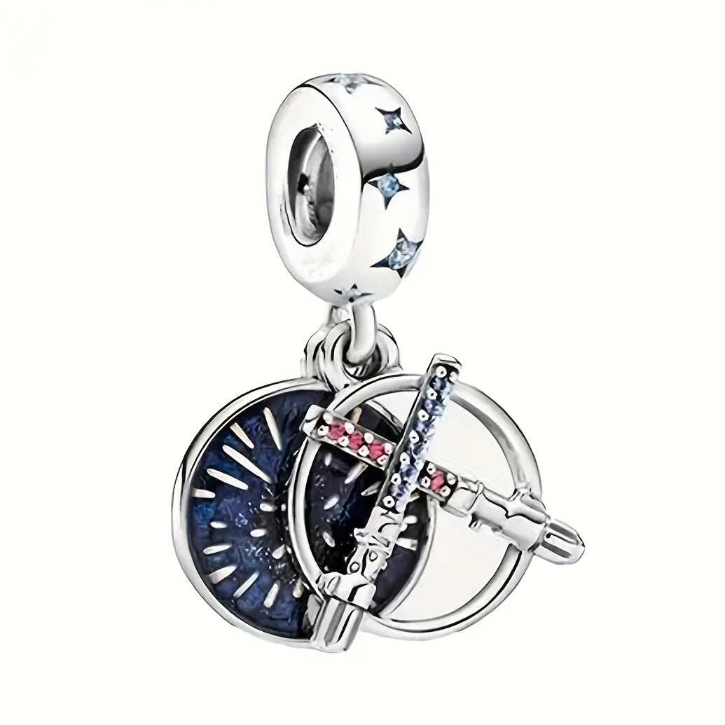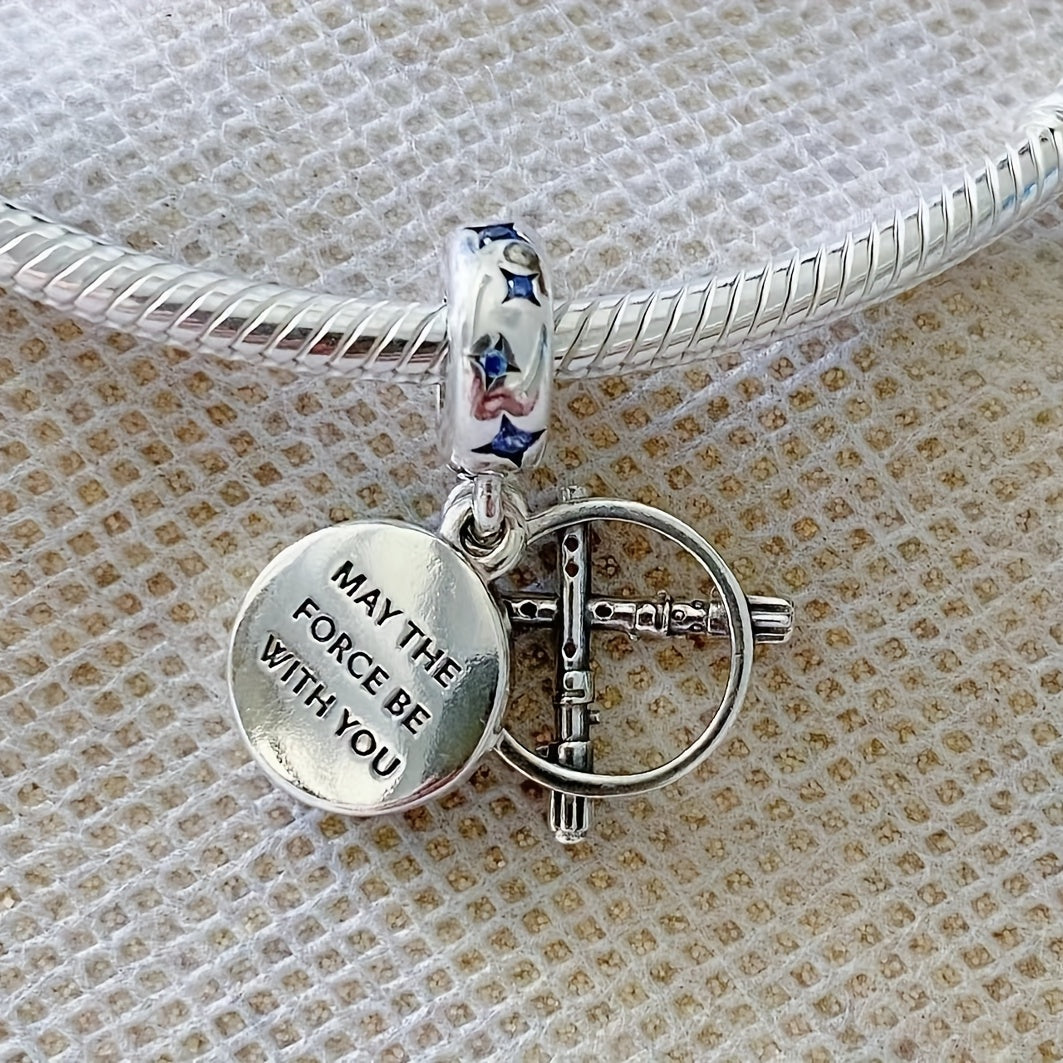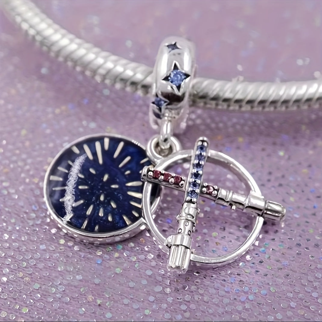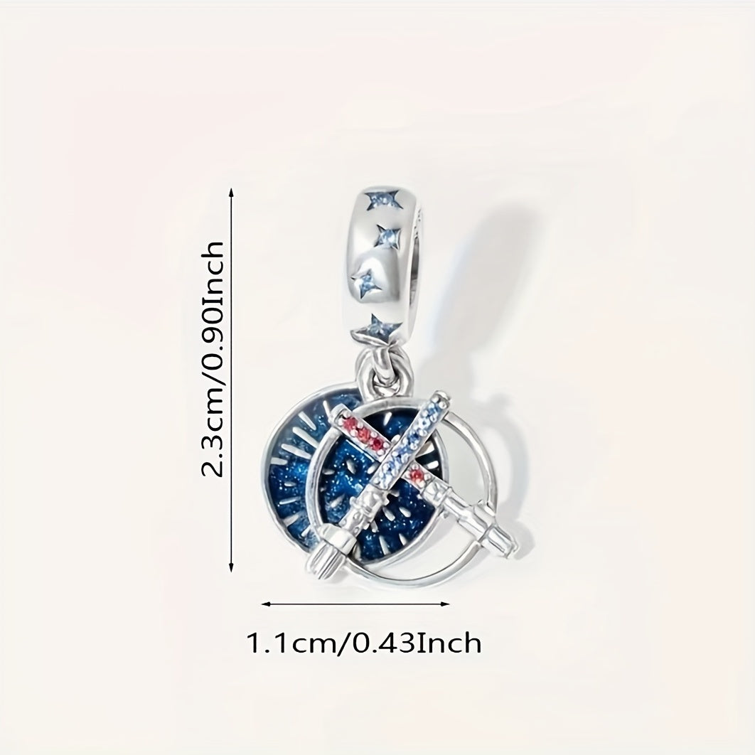 Elegant silver plated double sword pendant adorned with rhinestones for making custom beaded bracelets. Perfect for both men and women on birthdays.