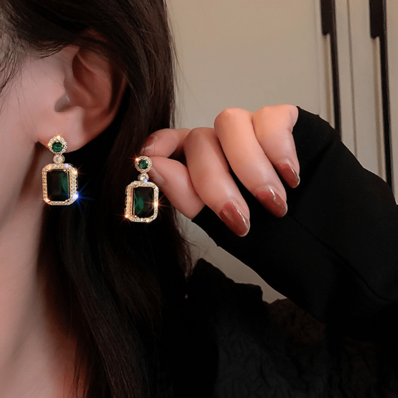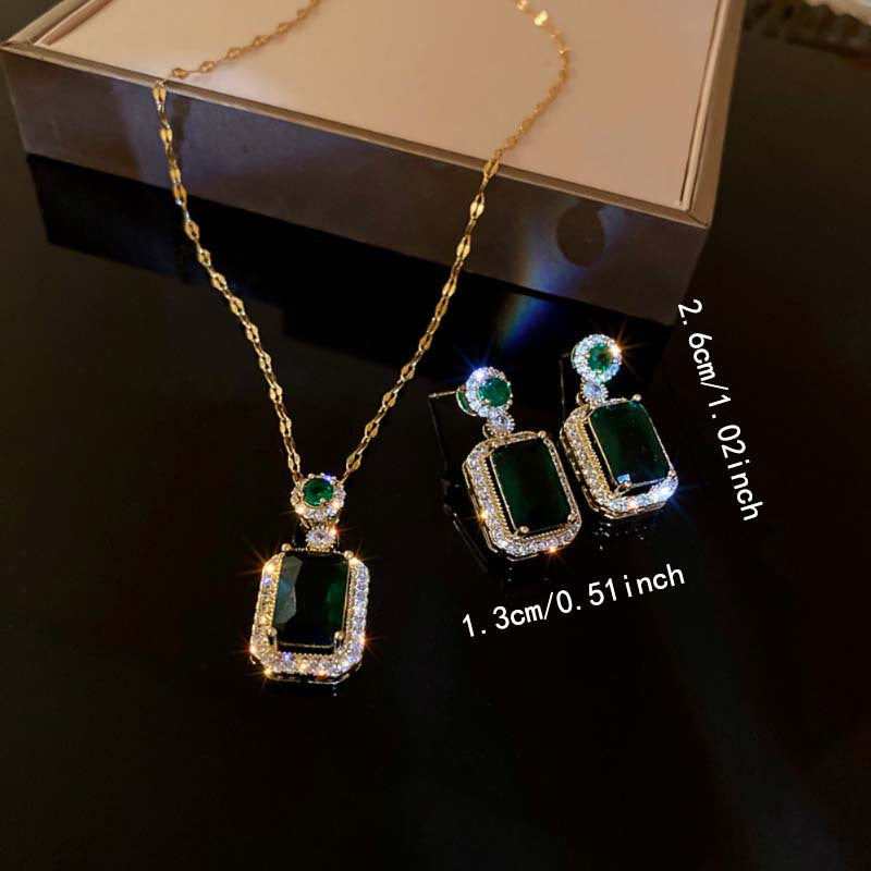 Elegant and stylish jewelry set featuring rhinestone and emerald crystal, perfect for banquets, proms, and parties.
