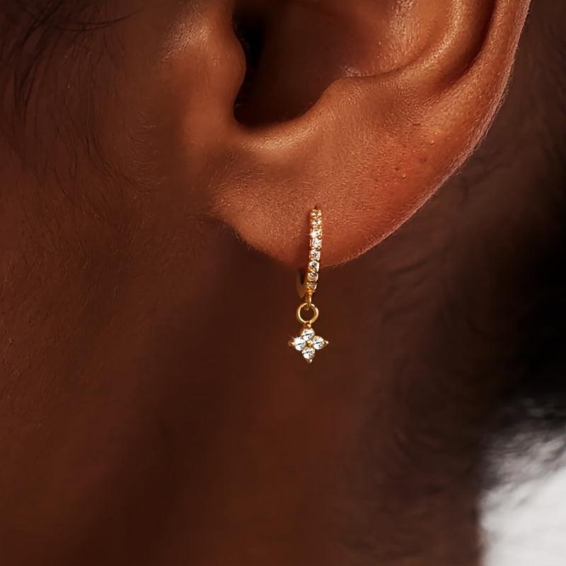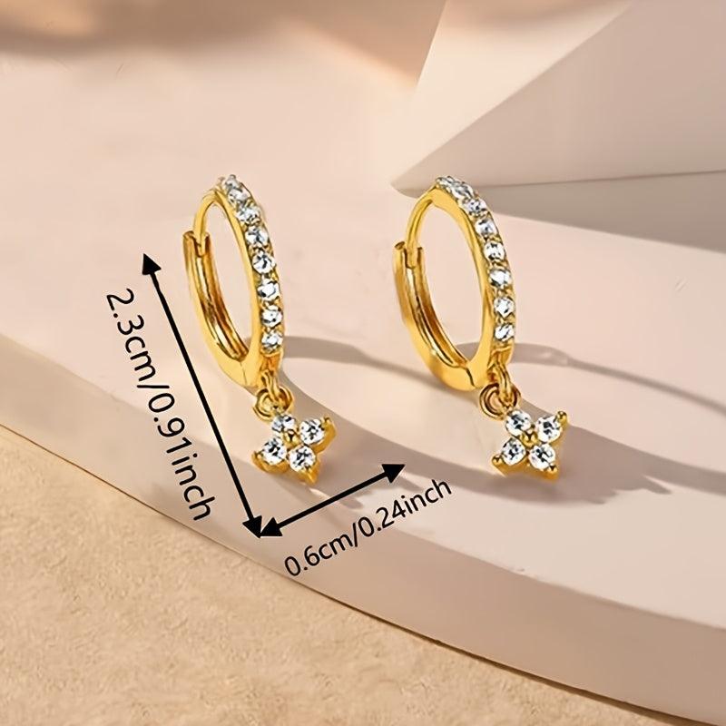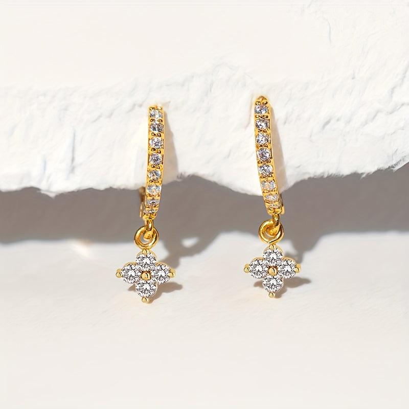 These elegant dangle earrings are adorned with rhinestone flower pendants, crafted from copper. Perfect for daily wear or as a Valentine's Day gift.
