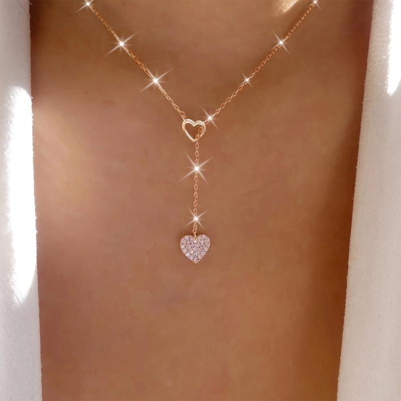 Add a touch of glamour with this sexy rhinestone heart Y necklace. The hollow love pendant makes a statement.