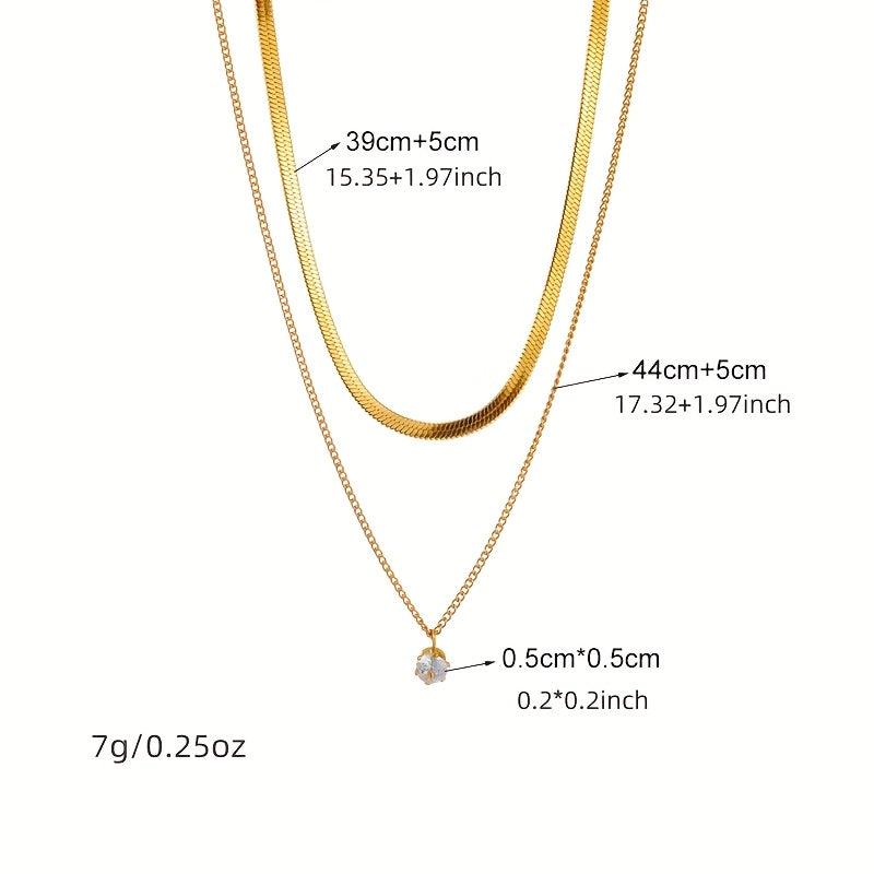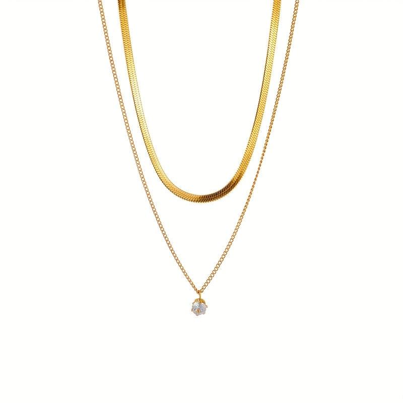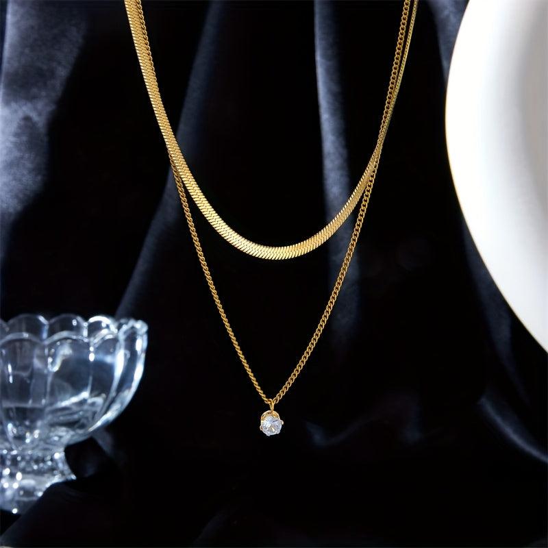 This double layer rhinestone necklace features a durable stainless steel chain with a sparkling crystal pendant. Perfect for everyday wear, this minimalist and durable piece of jewelry adds a touch of elegance to any outfit.