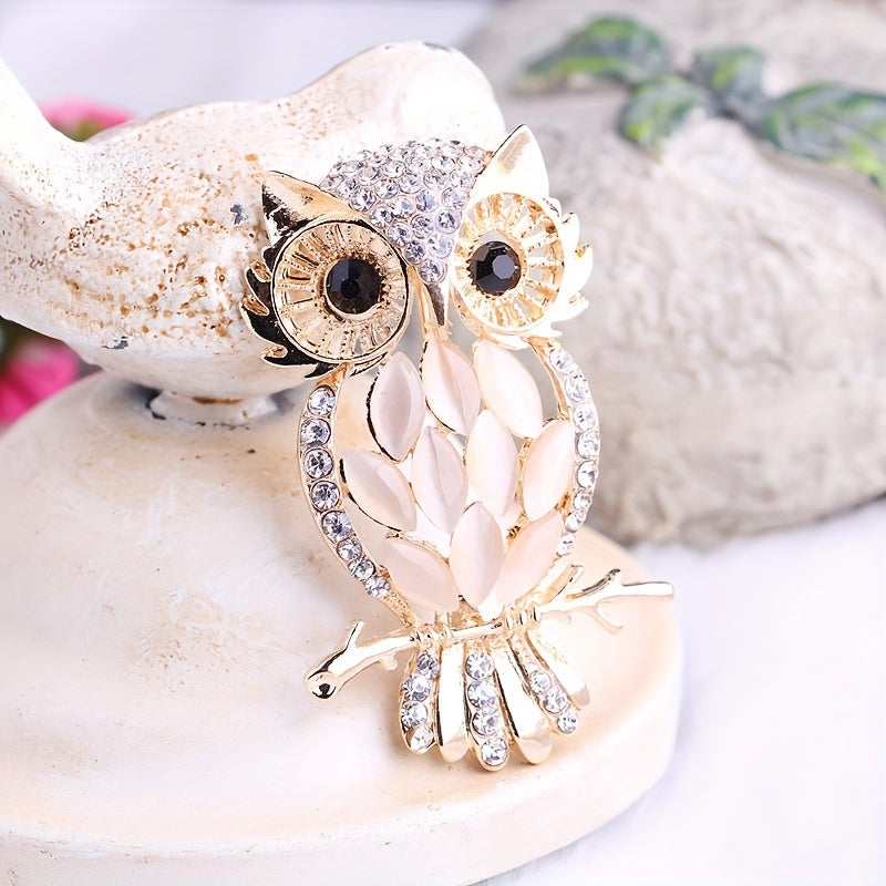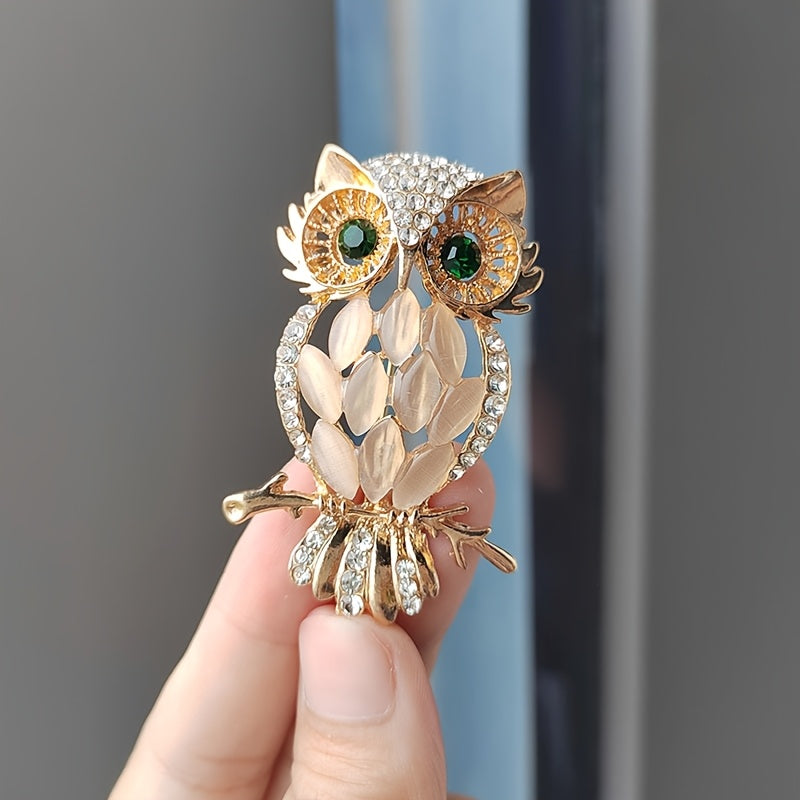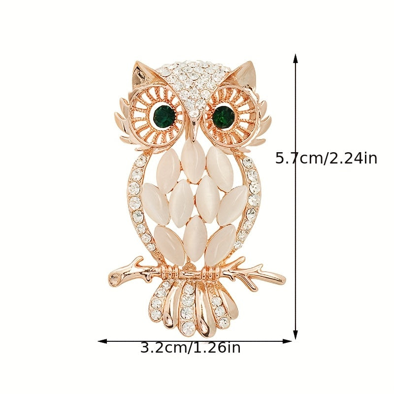 Add a touch of sparkle to your autumn and winter outfits with this charming owl brooch. Featuring sparkling green eyes and elegant pearl accents, it is the perfect accessory for the season.