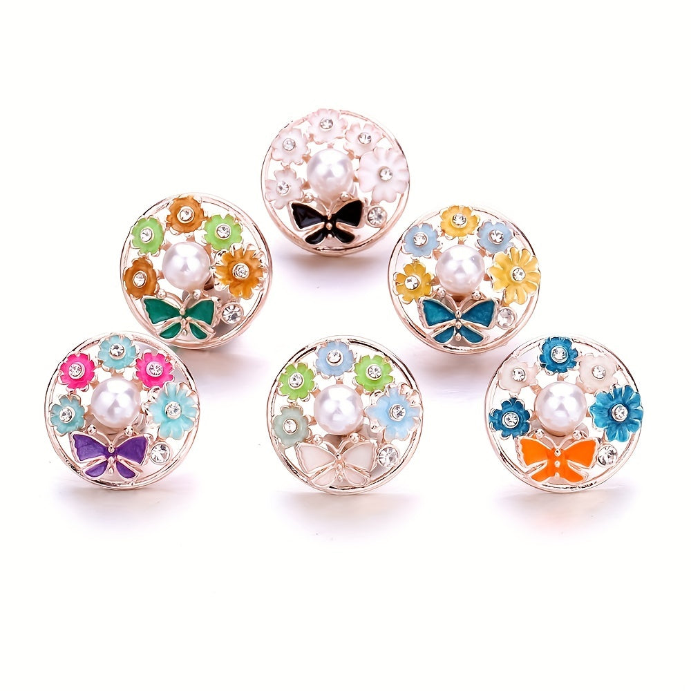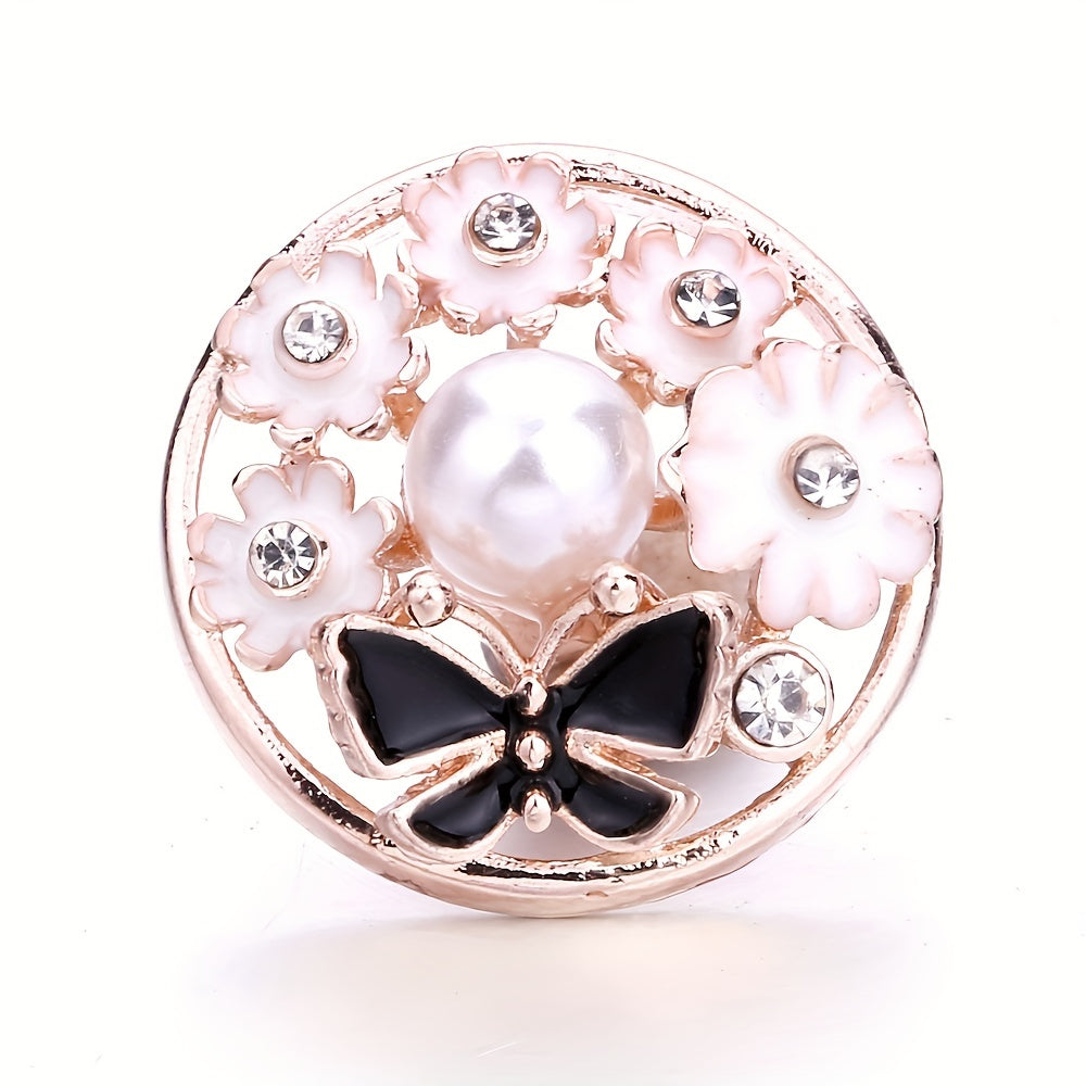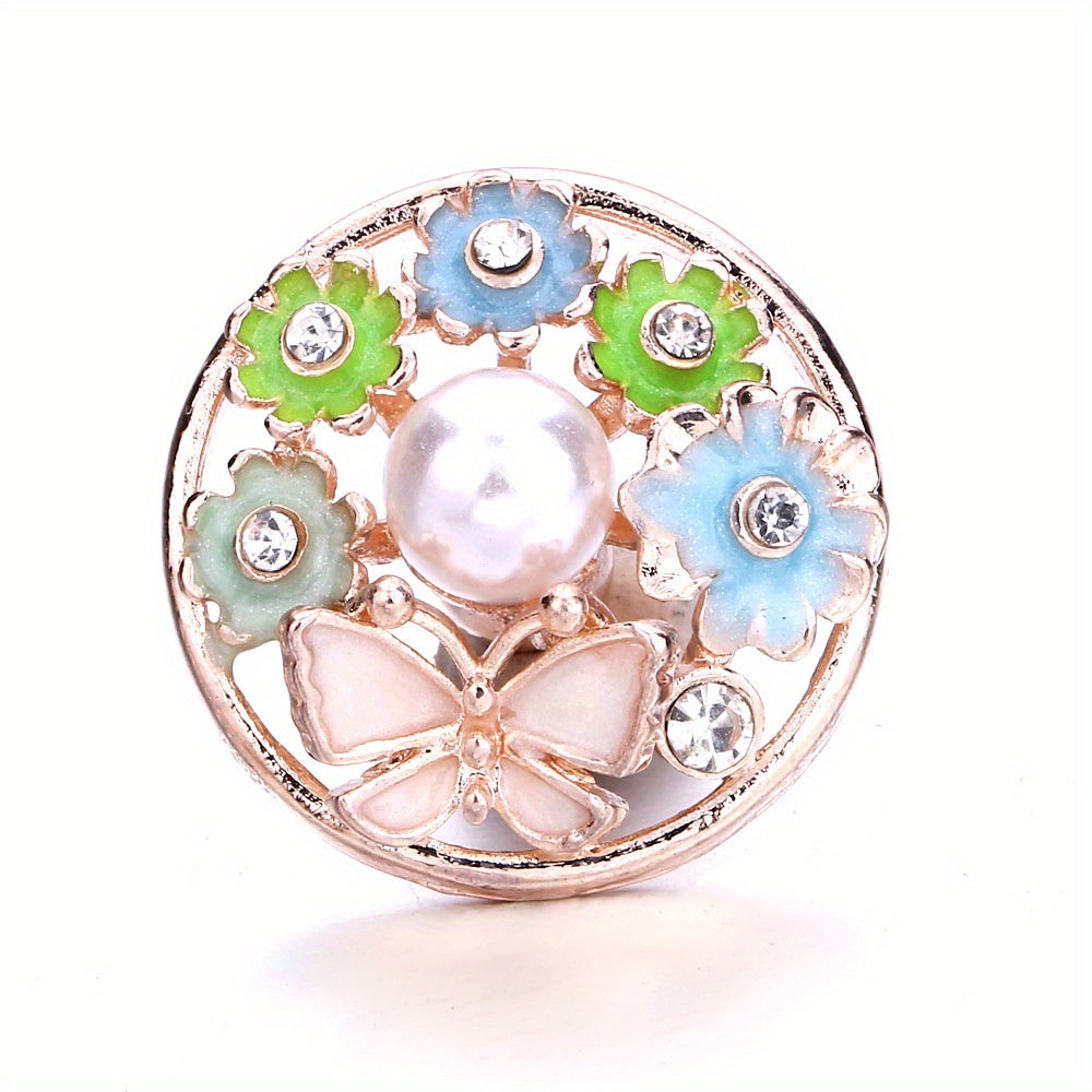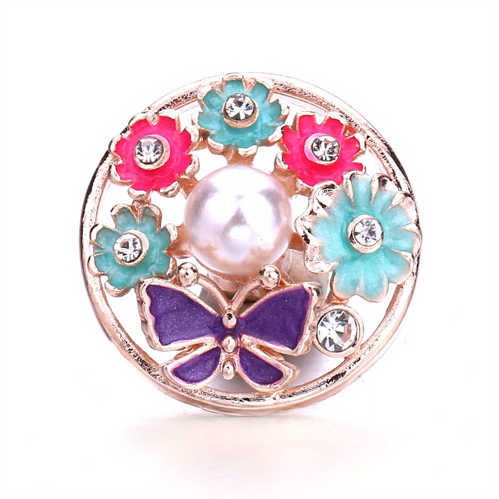 Add a touch of elegance to your bracelet with these inlaid rhinestone and faux pearl alloy snap buttons. These beautiful round flower butterfly pendants are perfect for bangle accessories.