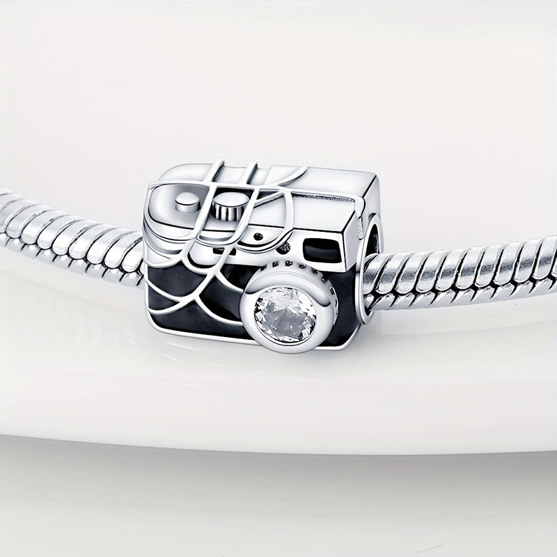 Add some sparkle to your DIY bracelet with this silver-plated spider web camera charm pendant. Perfect for women and men, this birthday jewelry piece features rhinestone accents that catch the light.