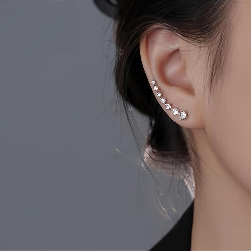 Add a touch of sparkle to your casual attire with these elegant Rhinestone Stud Earrings. Featuring seven star golden plating and sparkling round gemstones, these earrings are versatile and minimalist in style. Made of copper material.