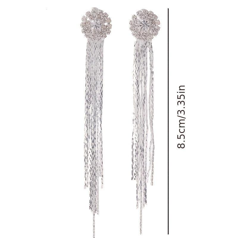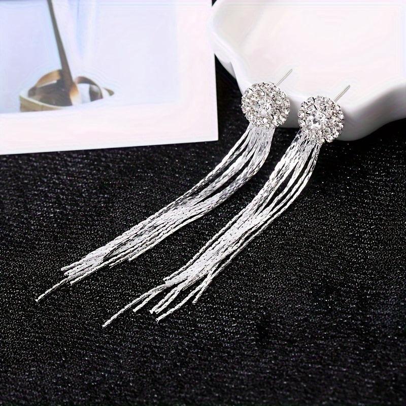 Elegant rhinestone tassel earrings perfect for weddings, parties, or daily wear. Features teardrop design with stainless steel posts.