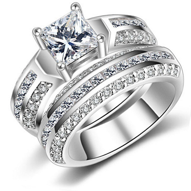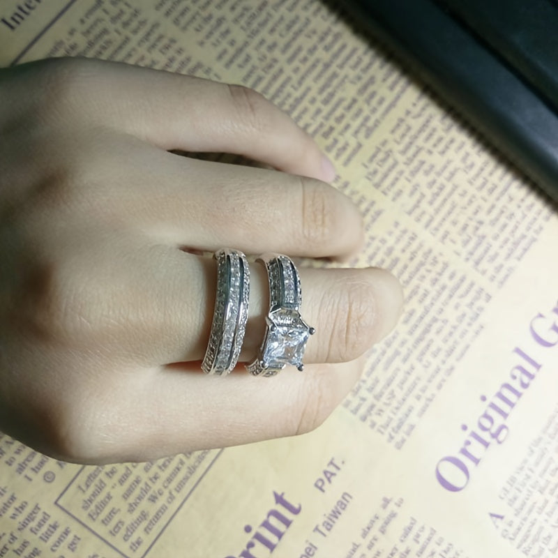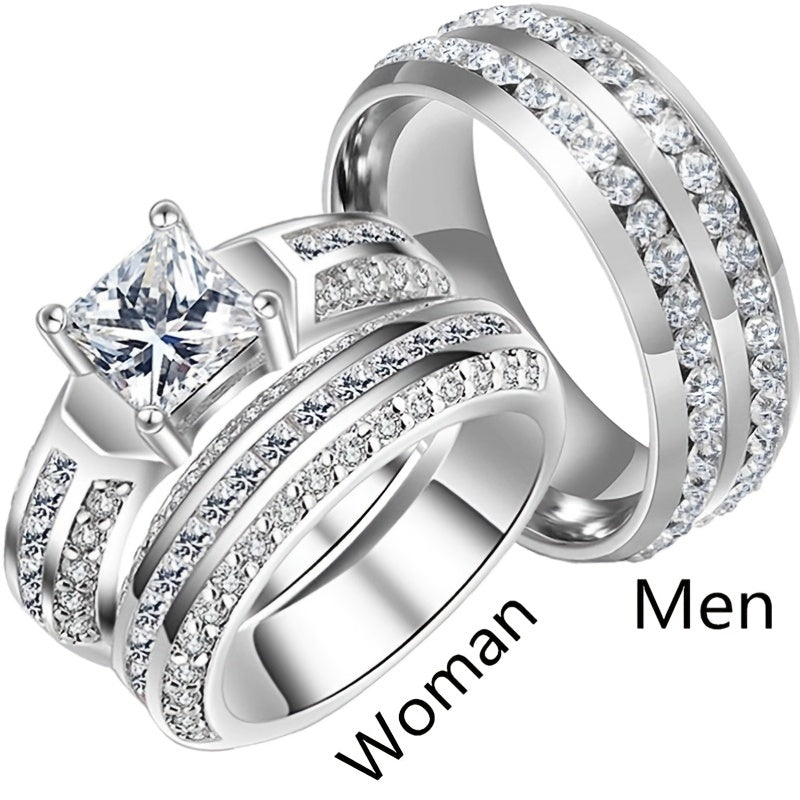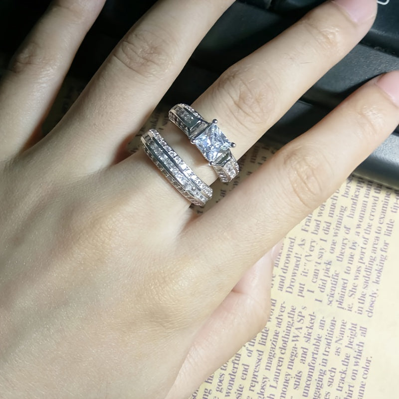 Beautifully crafted couple ring with rhinestone and zircon for wedding or engagement.