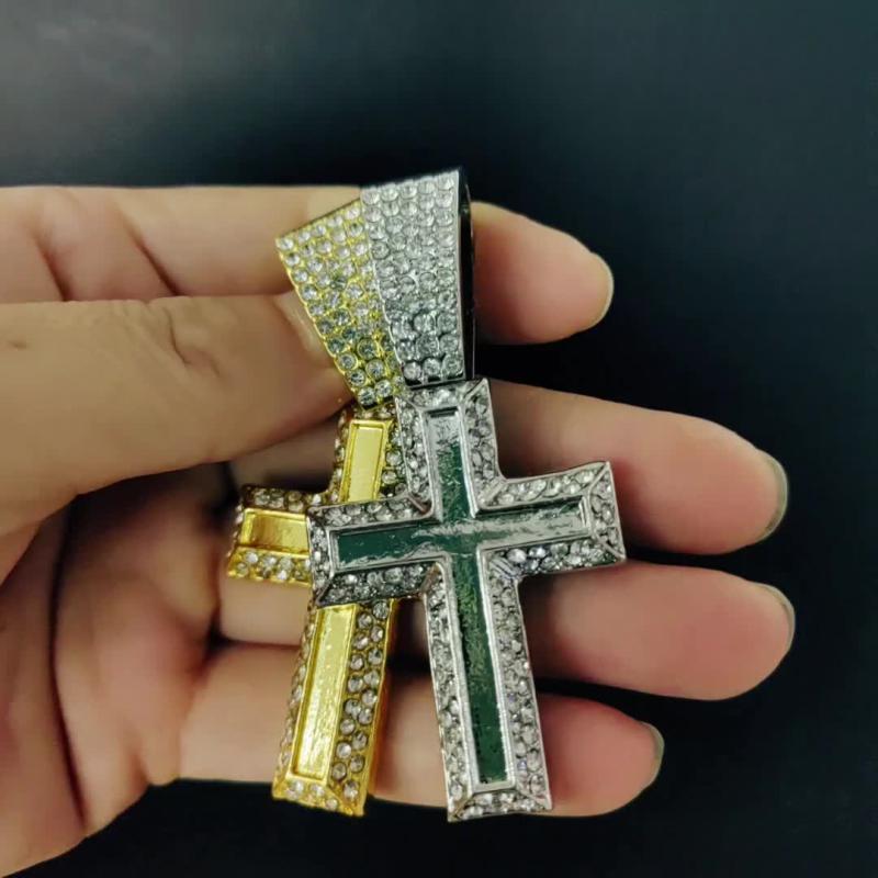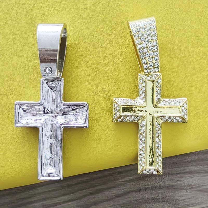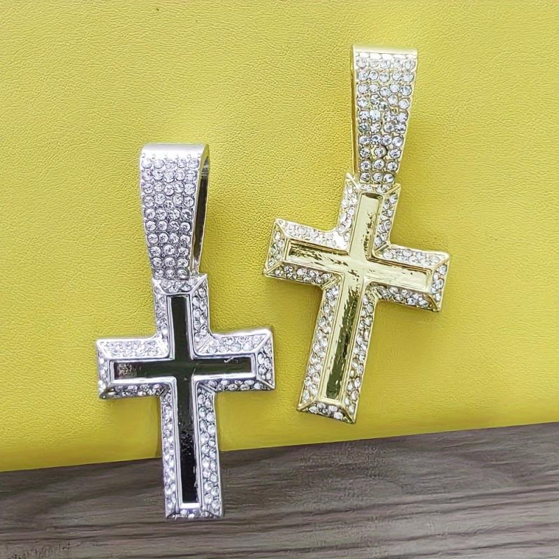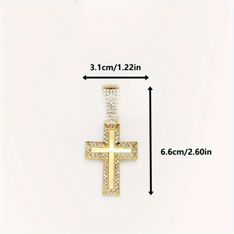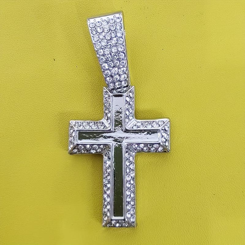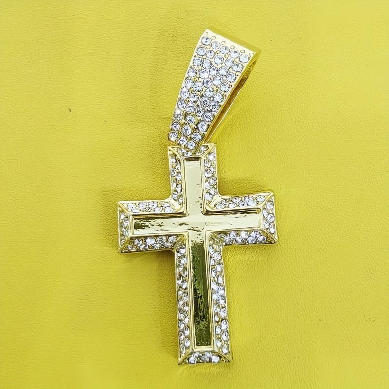 Elegant cross pendant with rhinestones on polished alloy for a stylish look.