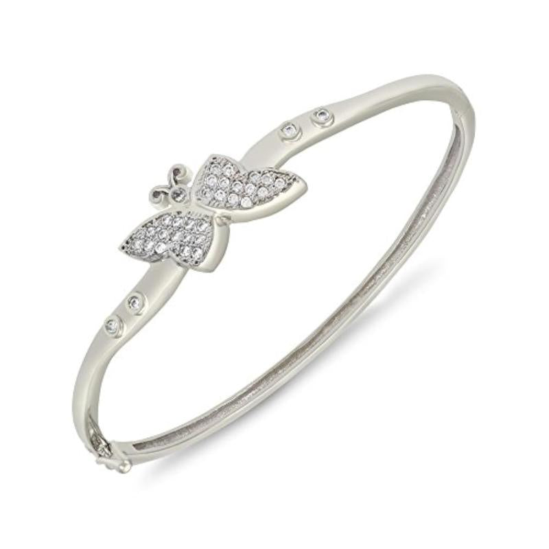 Beautiful rhodium plated butterfly kada featuring sparkling CZ stones.