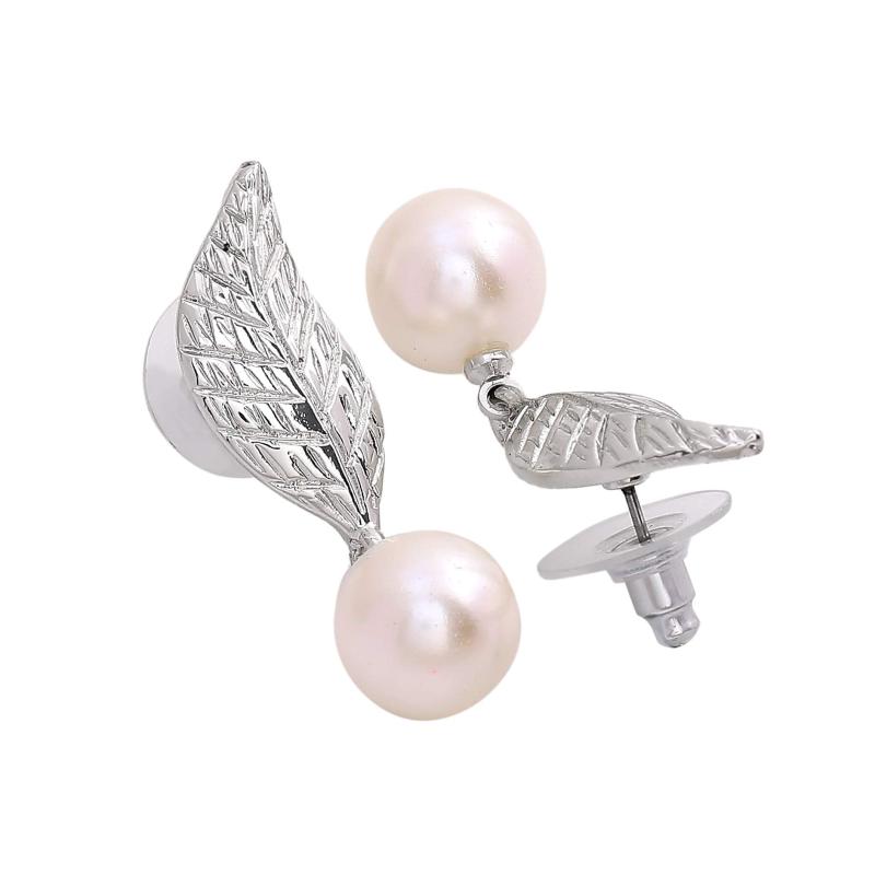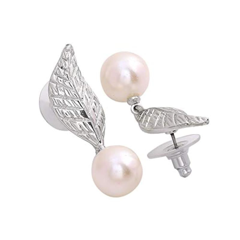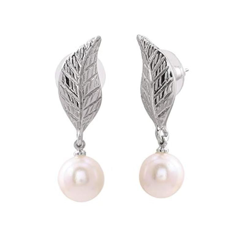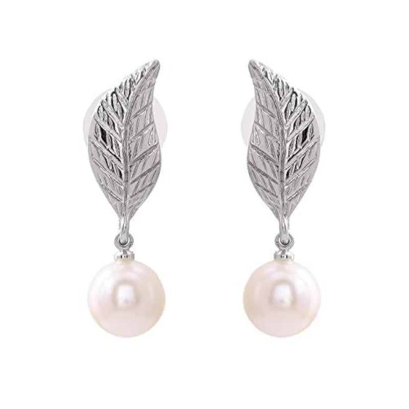 Elegant rhodium tone earrings with beautiful pearl drops to enhance your style.