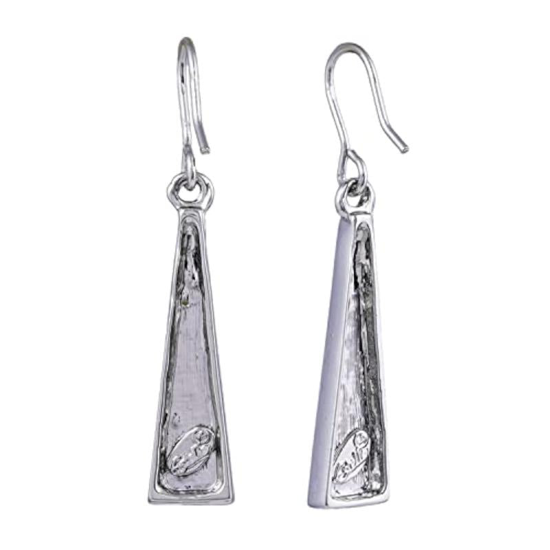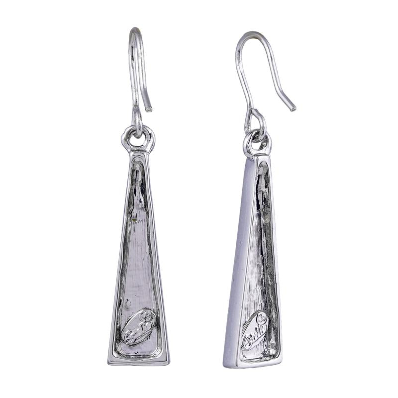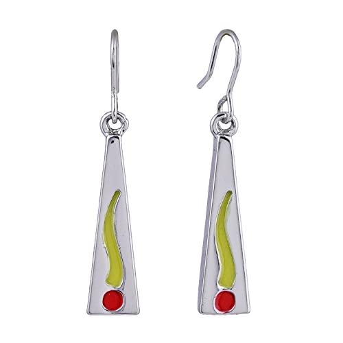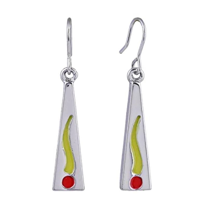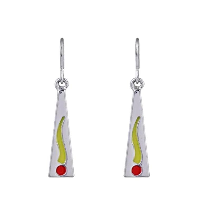 These elegant earrings feature a striking abstract Dhoop Divinity enamel pattern on a rhodium plated base. Perfect for adding a touch of sophistication to any outfit.