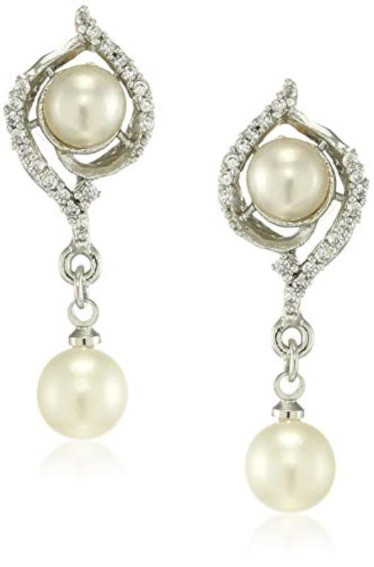 These elegant earrings feature rhodium plating and American diamonds with a beautiful pearl drop for a sophisticated look.