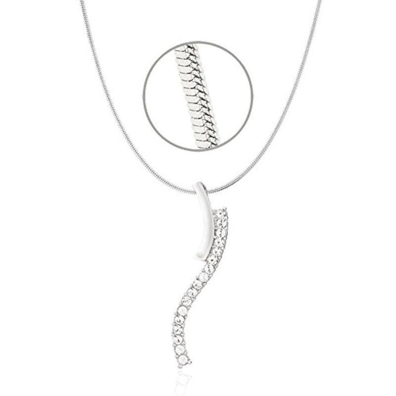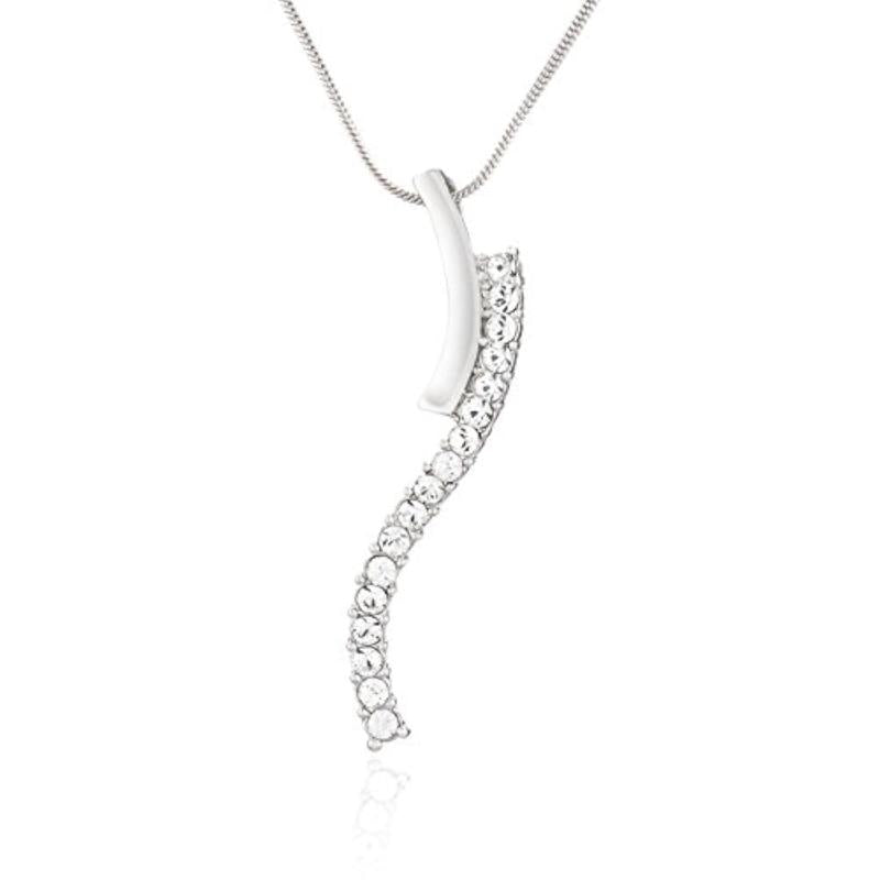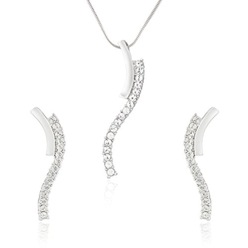 Elegant and stylish pendant set featuring crystals on a rhodium plated curve design.