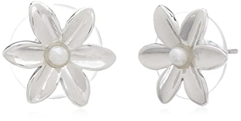 These beautiful stud earrings feature a dainty daisy flower design with luminous moonlight pearls. They are rhodium plated for a lasting shine and make a perfect accessory for any outfit.