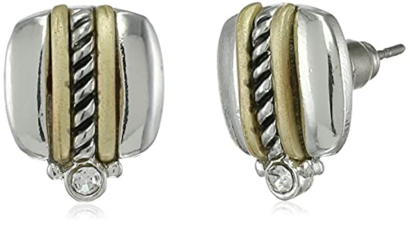 Elevate your style with these elegant stud earrings featuring a dual tone design and sparkling Austrian crystals.