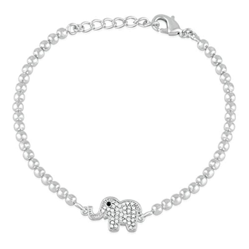 Add a touch of majesty to your look with this stunning rhodium plated elephant bracelet featuring sparkling crystal stones.