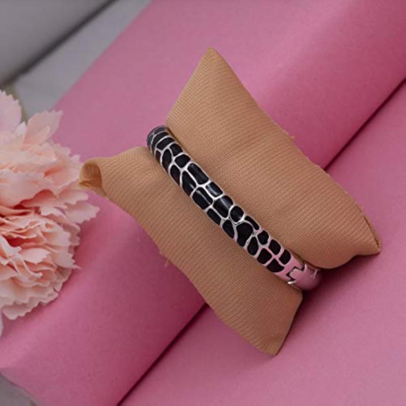 Elevate your style with this stunning rhodium plated cuff bracelet featuring a pathway-inspired enamel design.