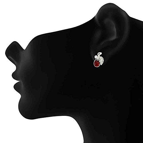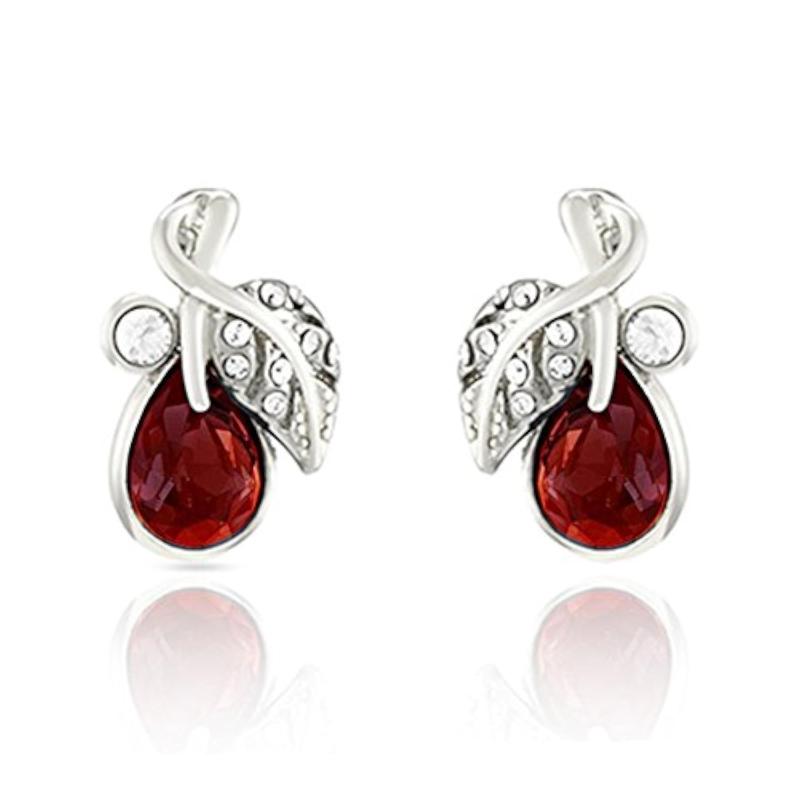 Elegant red berry marquise earrings plated with rhodium and adorned with Swarovski Elements.