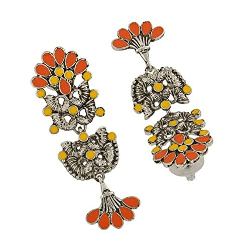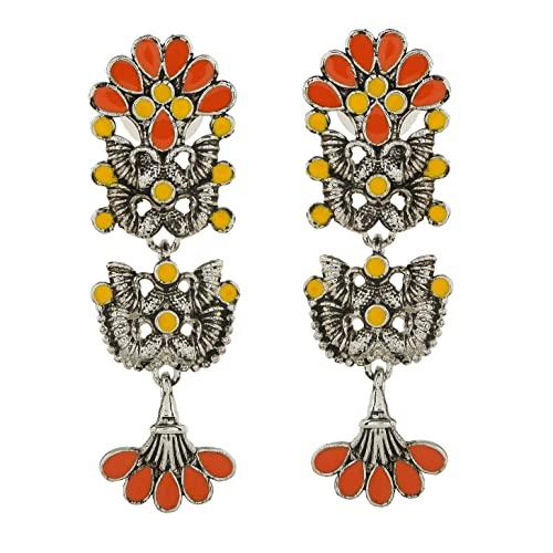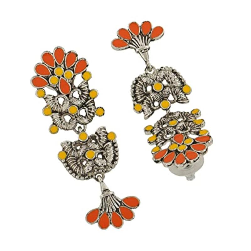 Add a pop of color to your outfit with these vibrant meenakari drop earrings, perfect for any occasion.