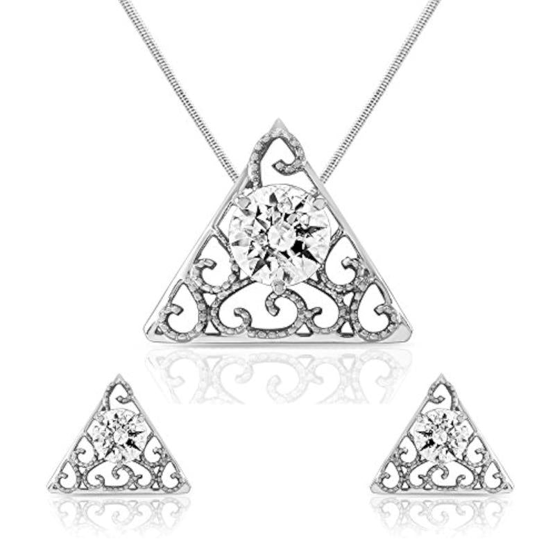This pendant set is made of brass alloy and features stunning Swarovski Zirconia. It has a remarkable design that will elevate your style.