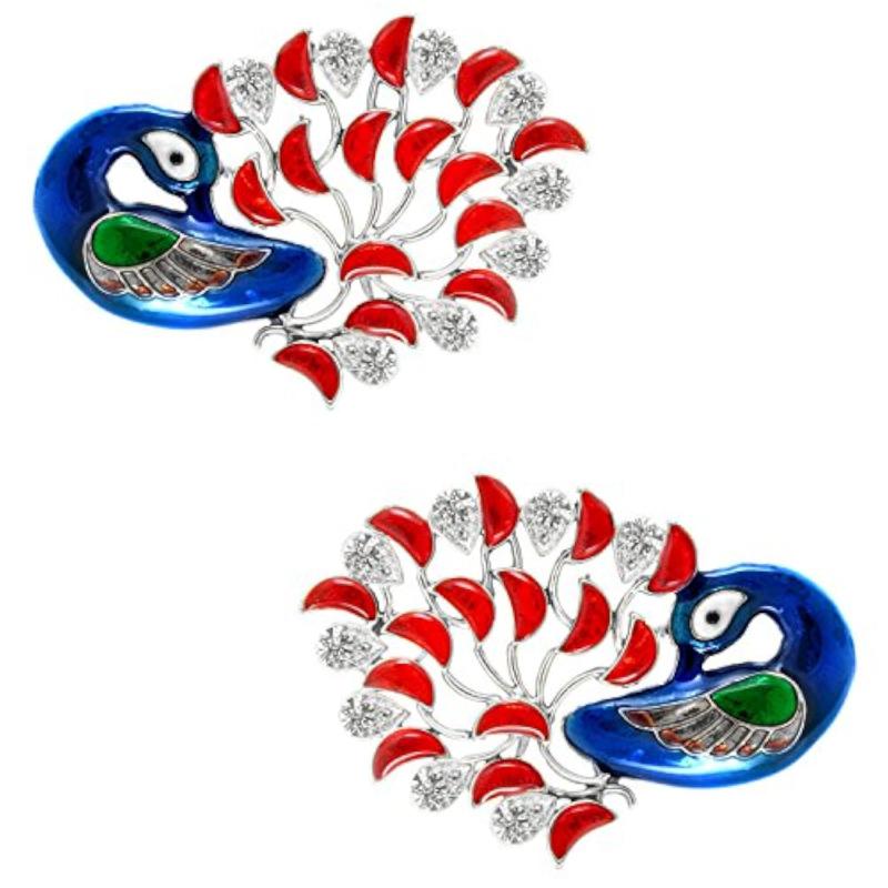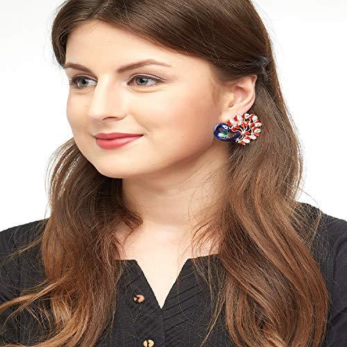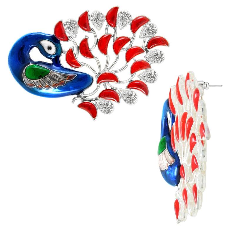 Make a bold statement with these stunning red peacock shaped earrings. The vibrant red color and intricate design will add a touch of elegance to any outfit.