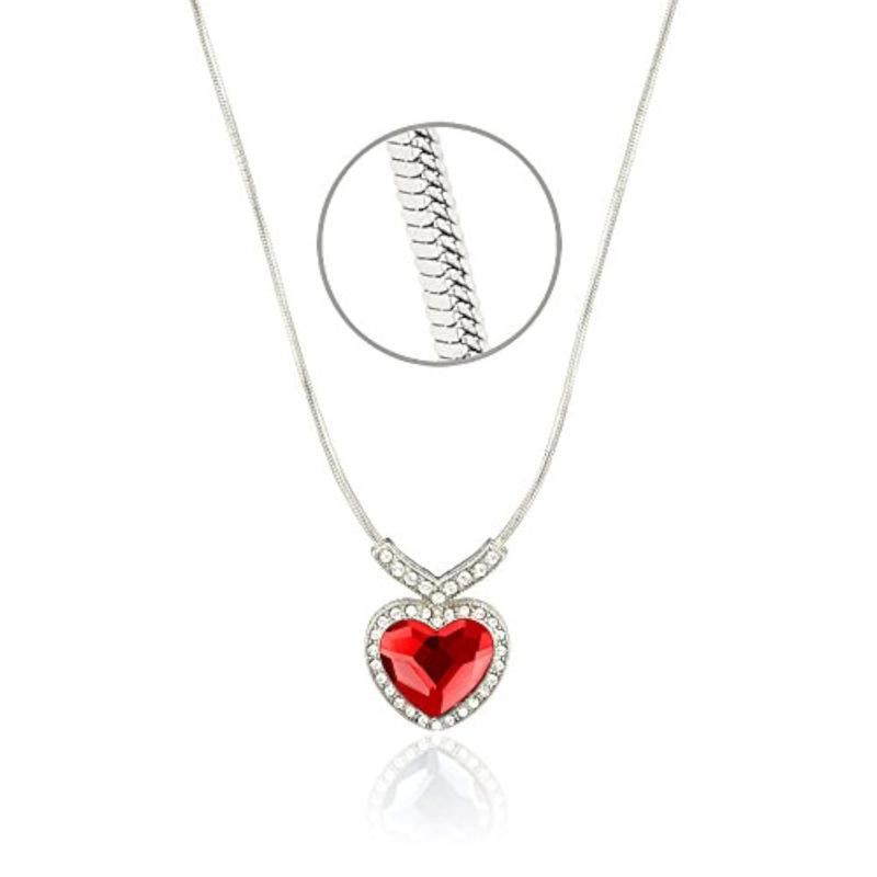 This stunning pendant features a red Titanic heart design with Swarovski Elements, perfect for adding a touch of elegance to any outfit.