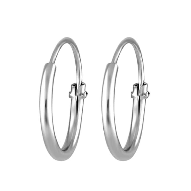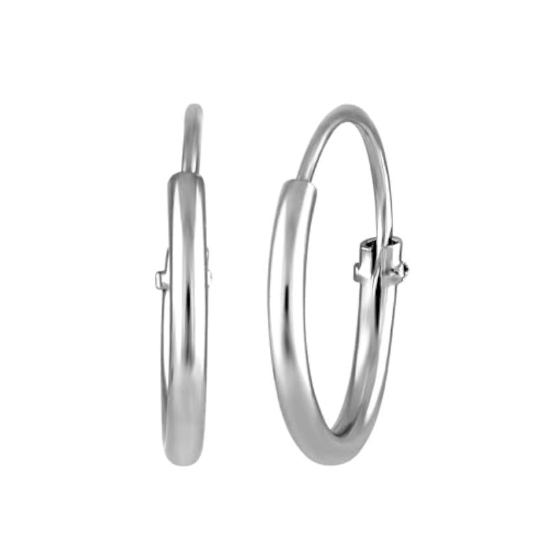 Add a touch of elegance to your look with these hoop earrings featuring a simple design and rhodium plating.
