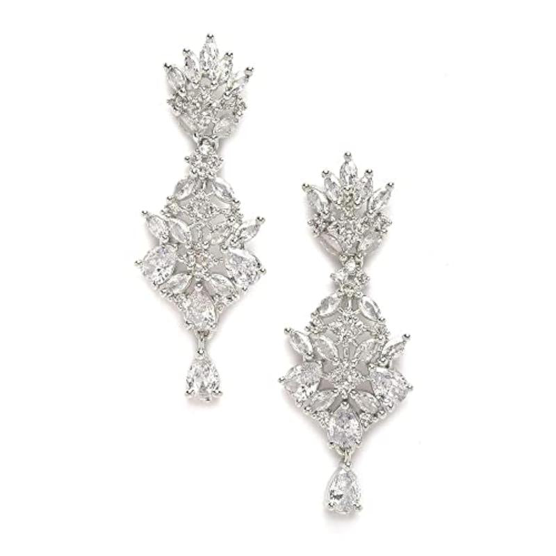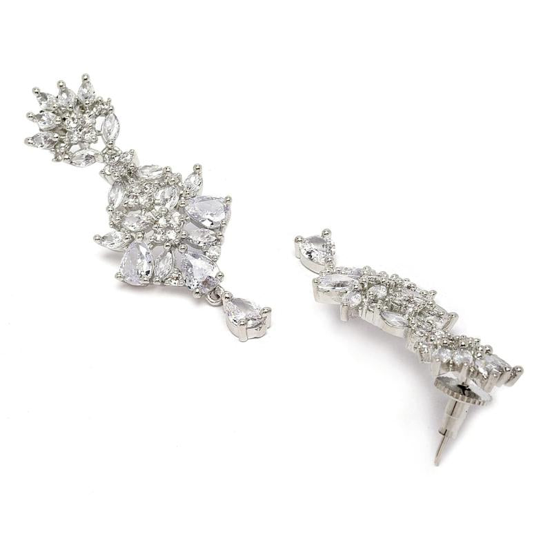 Elevate your style with these stunning Rhodium-Plated Silver Toned drop earrings featuring American Diamond embellishments in a unique spiked shape design.