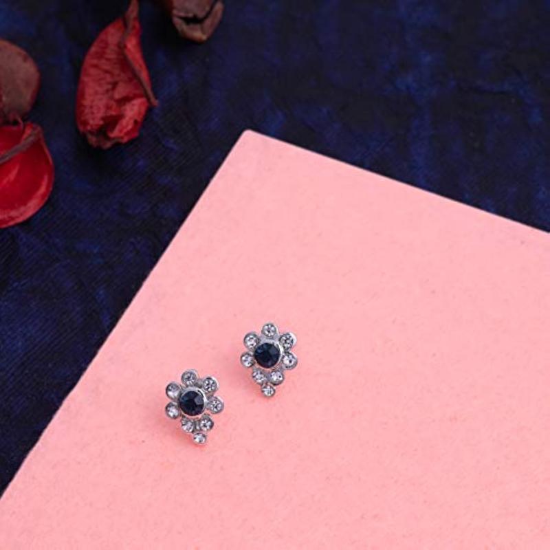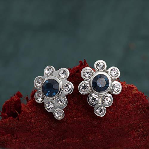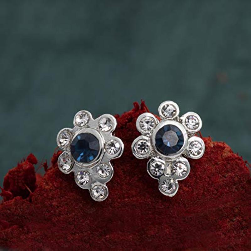 Gorgeous Rhodium tone earrings featuring stunning sapphire Nakshatra taper studs.
