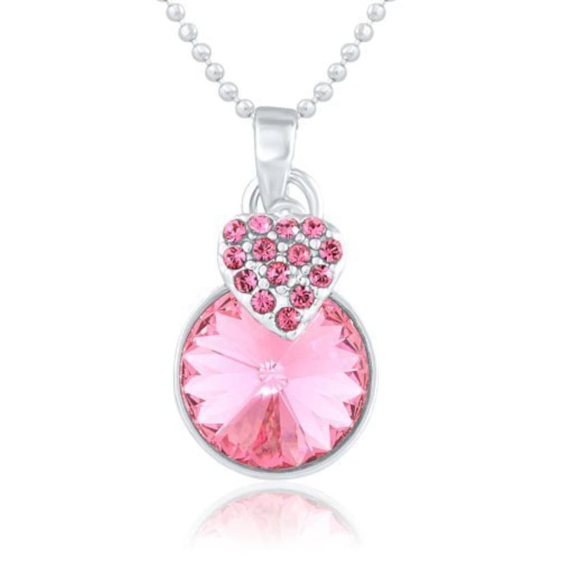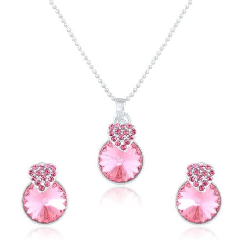 Elegant pendant set featuring a luscious strawberry design made with Swarovski Crystals, plated in rhodium for a luxurious finish.