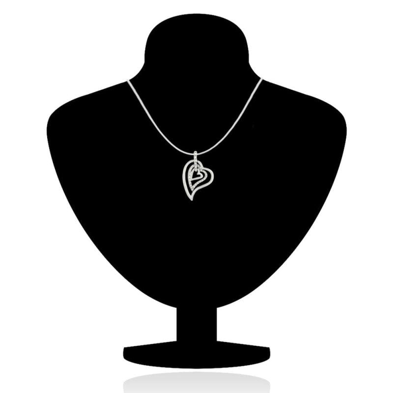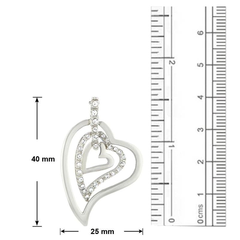 Elegant pendant featuring three hearts with sparkling crystals, plated with rhodium.