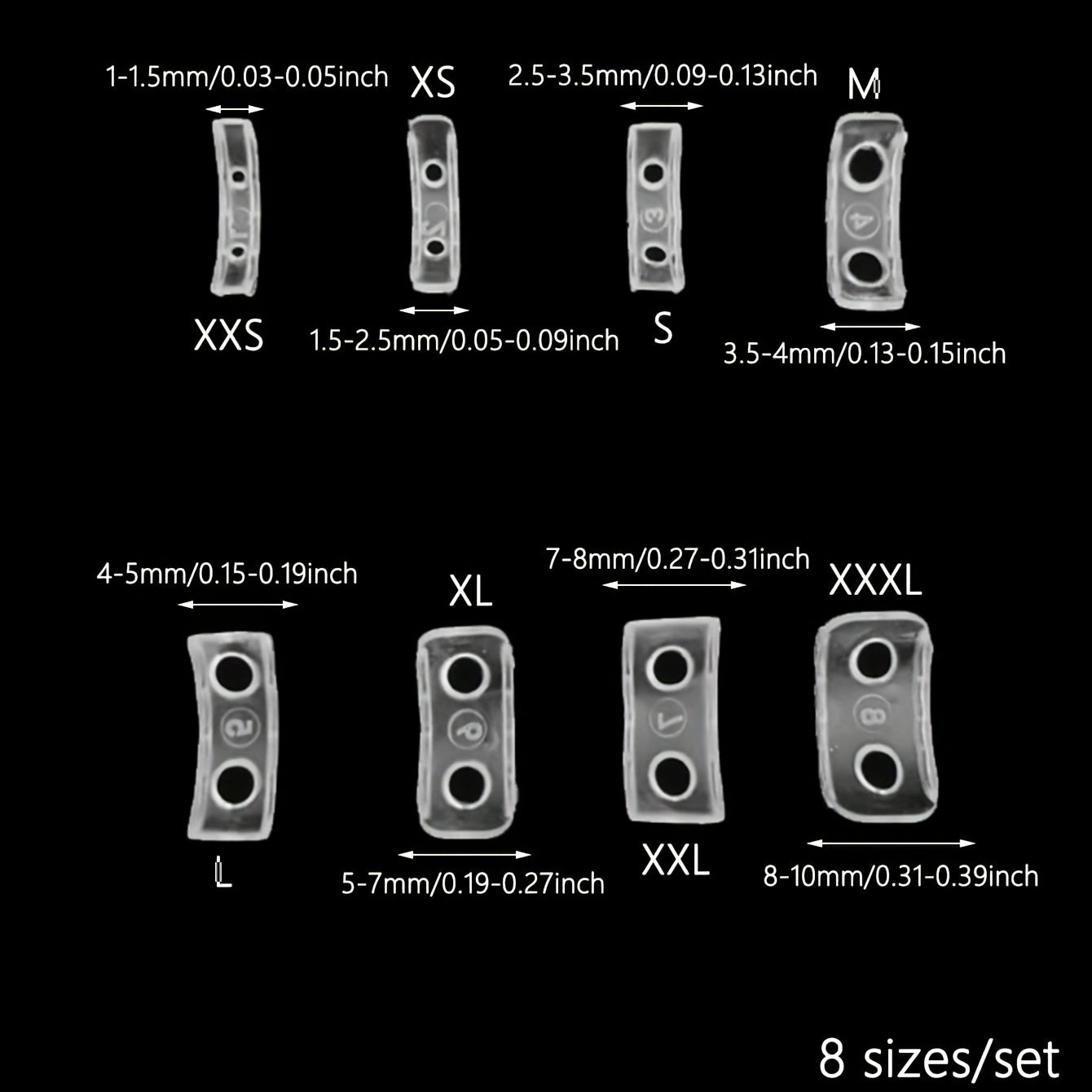 This set includes 8 ring size adjusters of different sizes. They are transparent and invisible, perfect for keeping your loose rings in place. Easy to use and comfortable to wear.