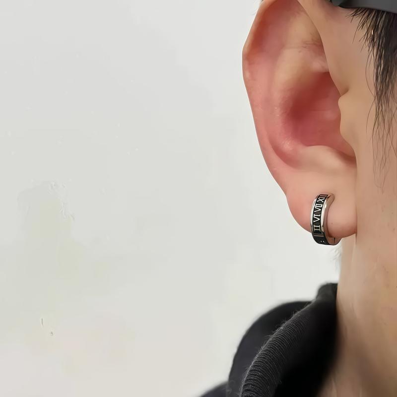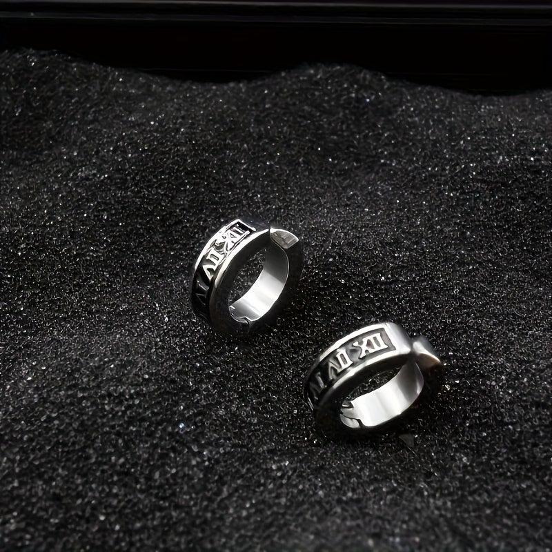 Enhance your style with these stylish Roman Numeral titanium ear clips featuring a gothic plated K design. Perfect for parties and special events.