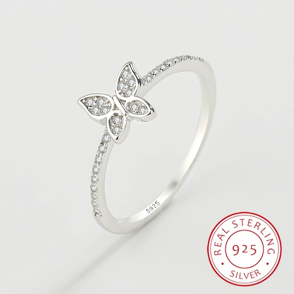 This stunning zircon ring features a romantic butterfly design crafted with 925 sterling silver. It makes a perfect personality gift for someone special.