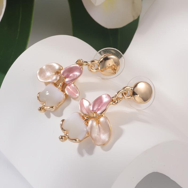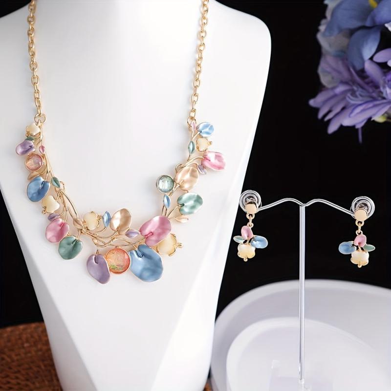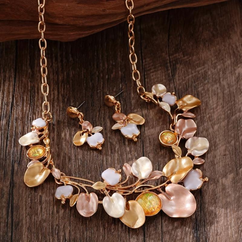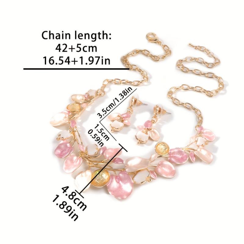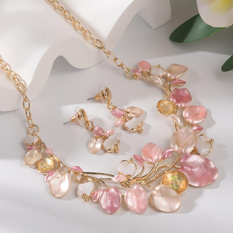 Complete your spring and summer look with this charming zinc alloy jewelry set featuring pink enamel leaf designs. Perfect for adding a touch of romance to your outfits.