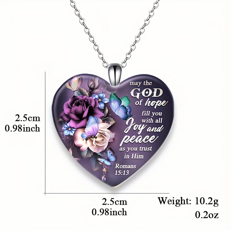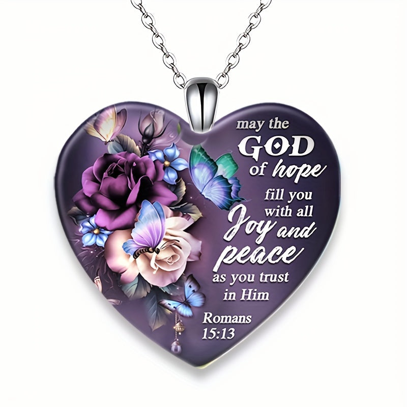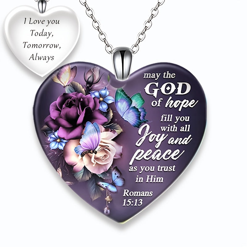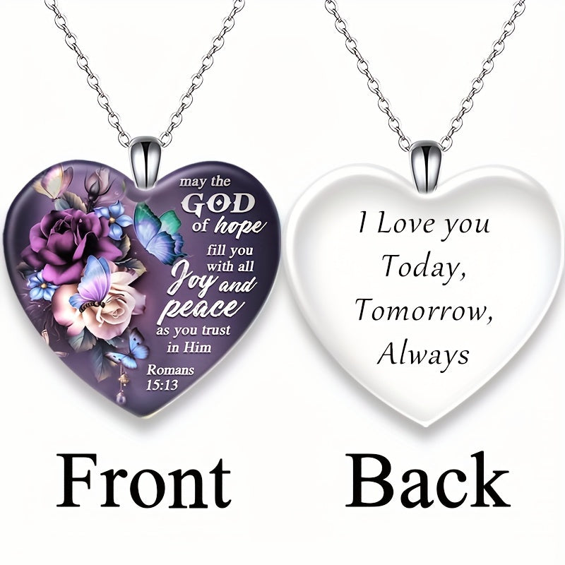 This elegant pendant necklace features a heart-shaped crystal pendant with a beautiful rose and butterfly design. Perfect for daily wear or as a thoughtful gift.
