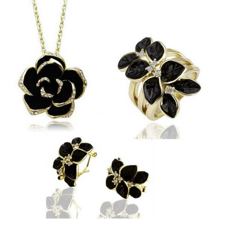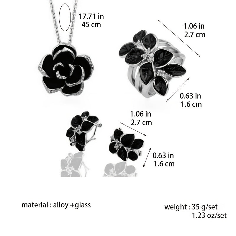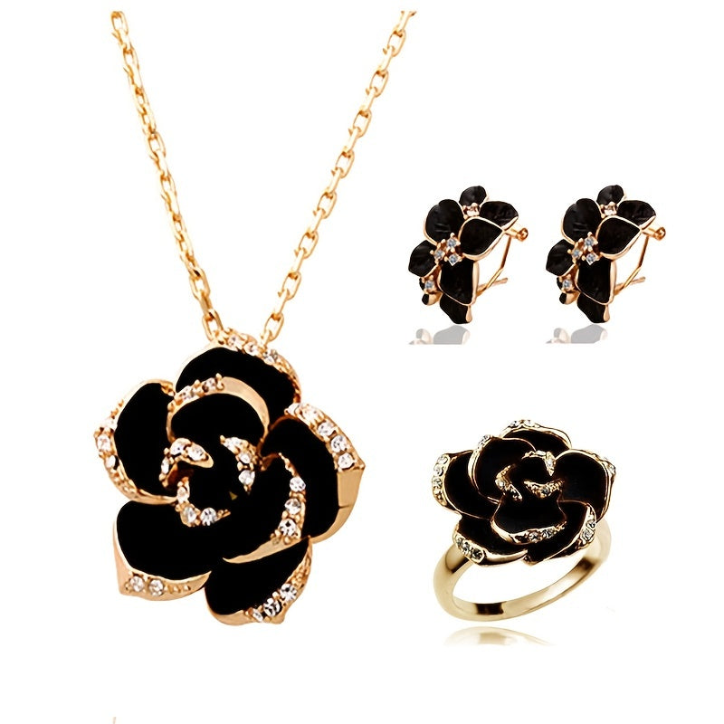 Complete your party look with this elegant rose jewelry set, featuring a flower pendant necklace, ring, and earrings. Perfect for weddings, proms, and special occasions.