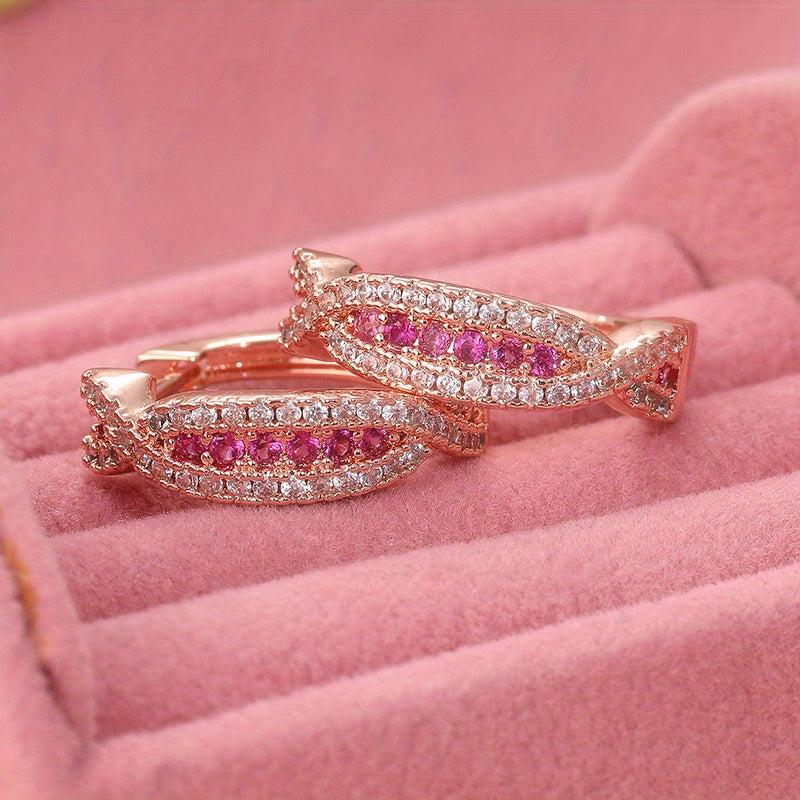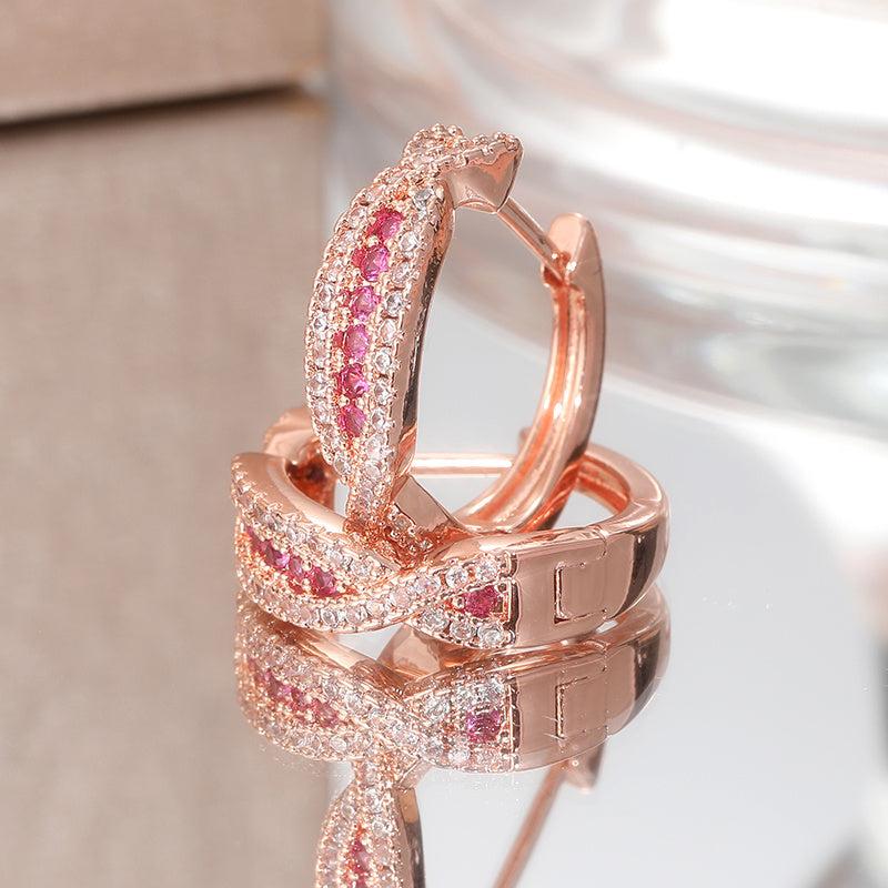 Rose Gold CZ Hoop Earrings Set - Ideal Gift for Wife