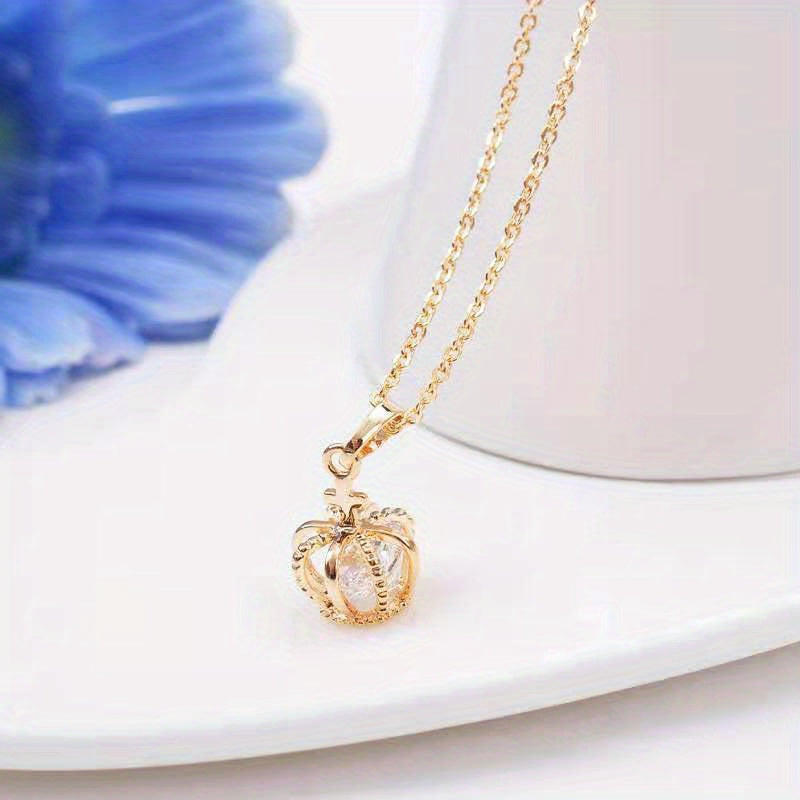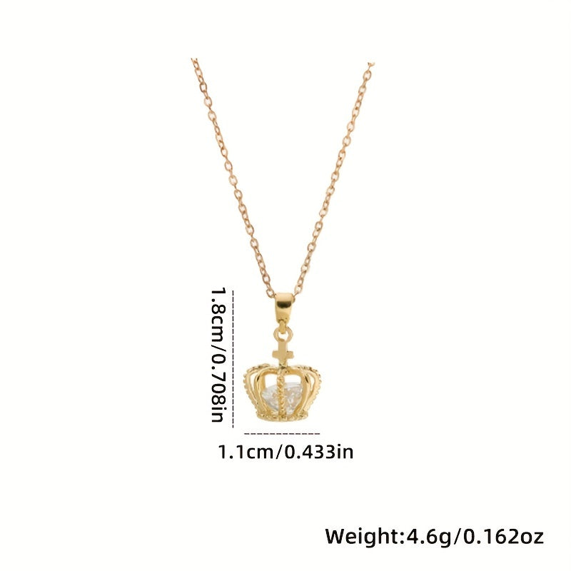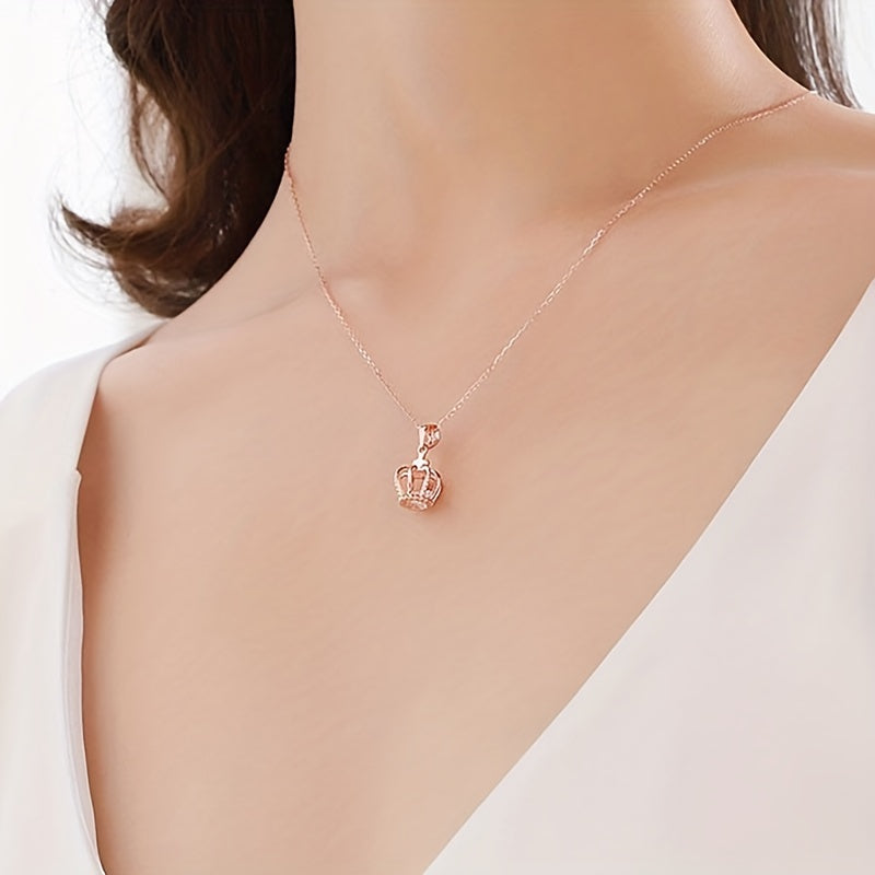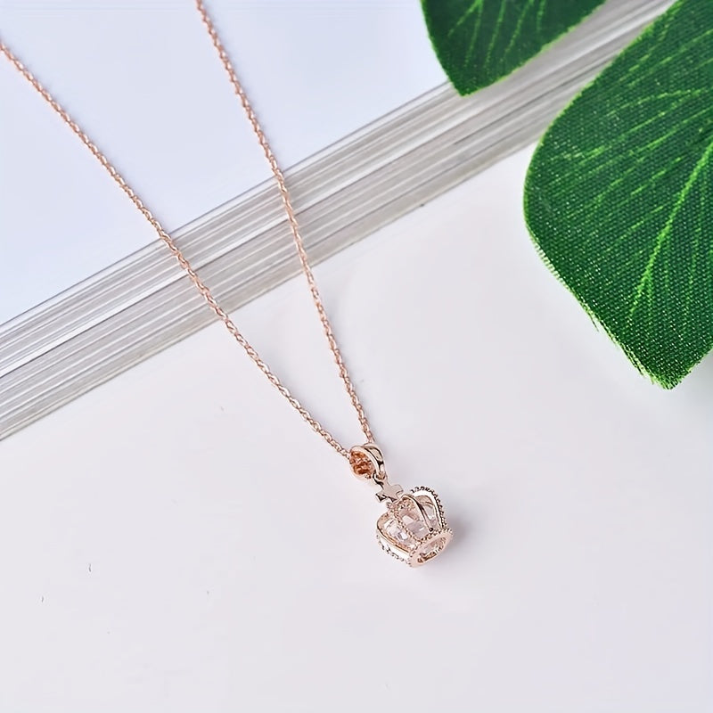 Add a touch of elegance with this stunning rose gold pendant crown necklace. Made of titanium steel with hollow design and zircon accents, it's perfect for any occasion.