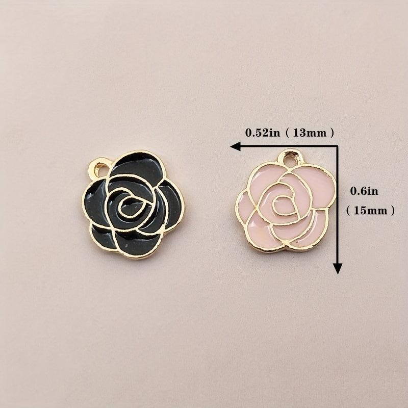 Enhance your jewelry creations with these beautiful rose shaped pendants. Made of high-quality alloy with dripping oil finish, perfect for bracelets and necklaces.