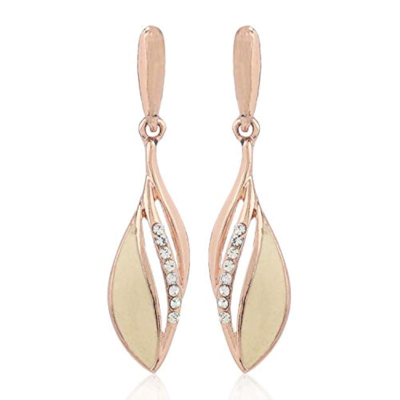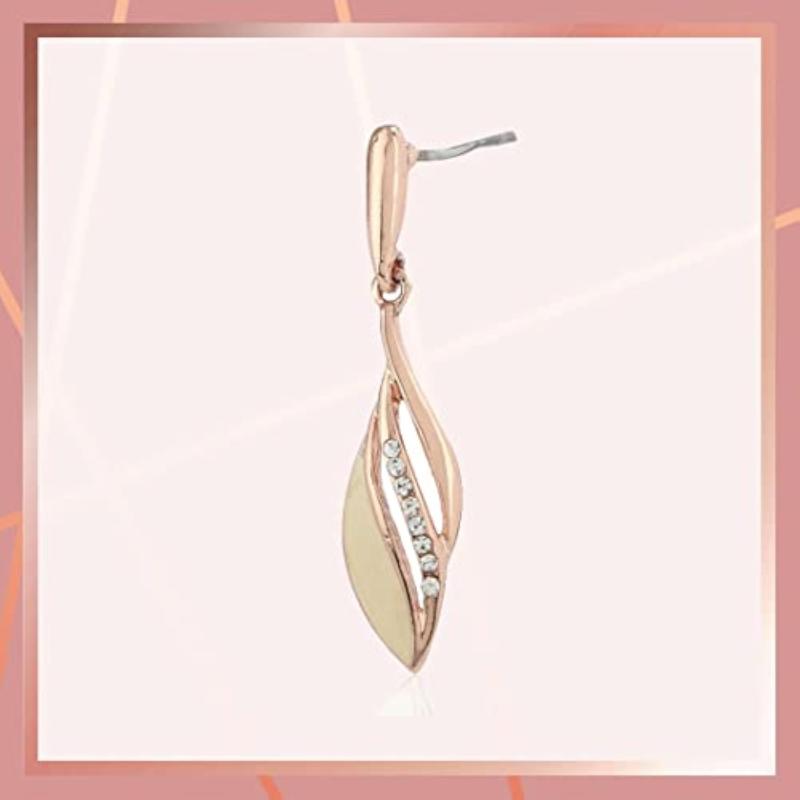 Elegant rose gold plated drop earrings with sparkling crystals and enamel accents. Perfect for girls and women.