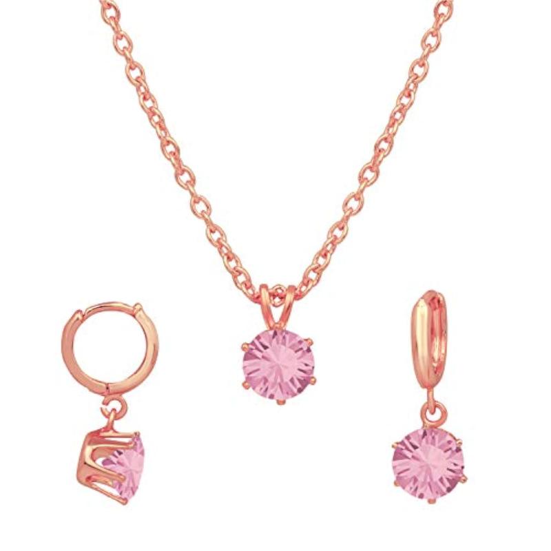 Elegant and charming pendant set with round crystal in rose plated setting.