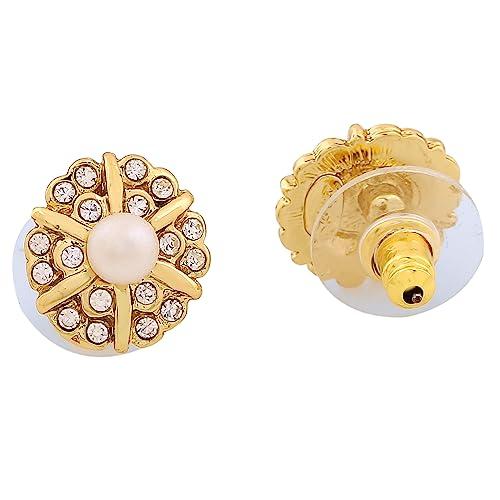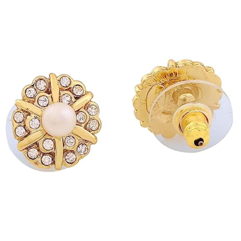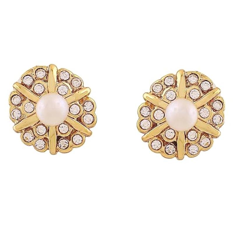 Add a touch of elegance to your look with these beautiful rose & plated stones stud earrings.