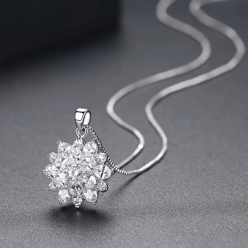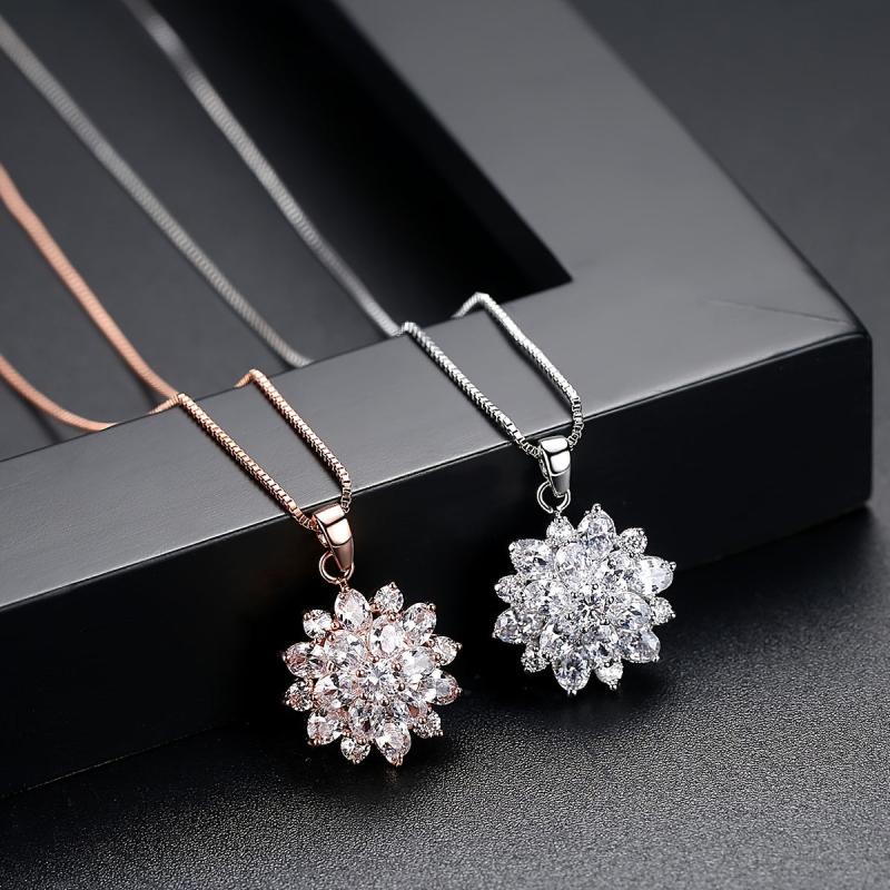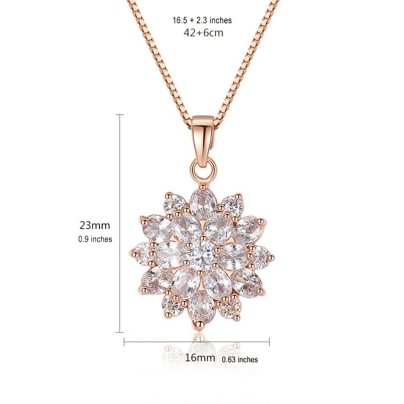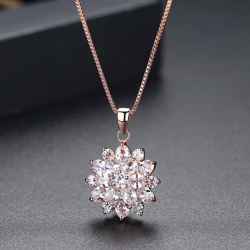 Elegant rose gold plated necklace featuring a sunflower pendant with sparkling zircon inlays.