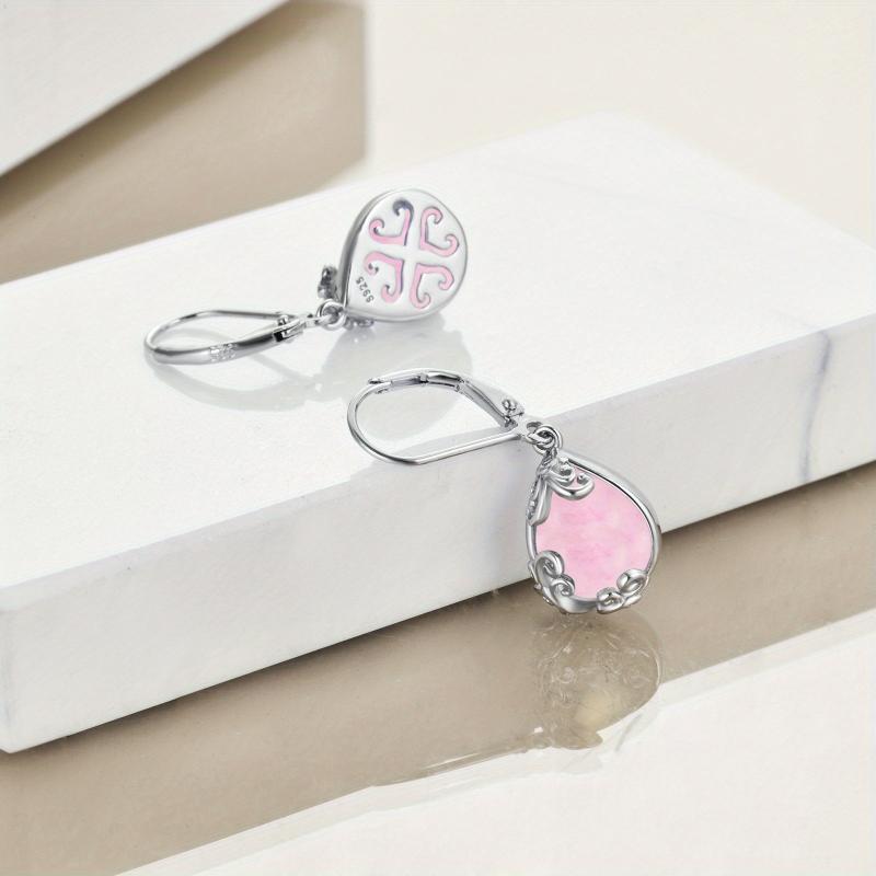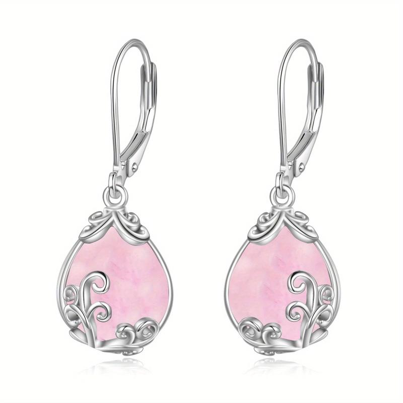 Experience elegance with these sterling silver leverback earrings featuring filigree rose quartz teardrop drops in a stunning pink hue.