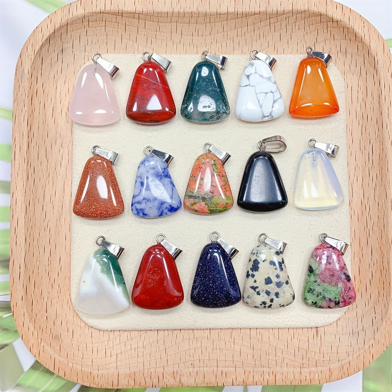 This trapezoid-shaped pendant is made of natural rose quartz, perfect for DIY necklace making and reiki healing.