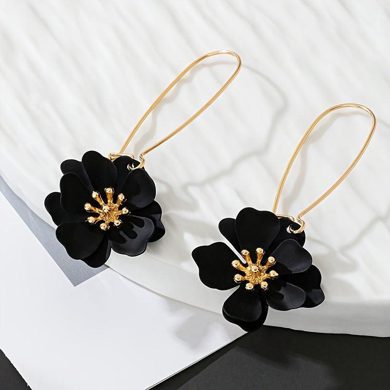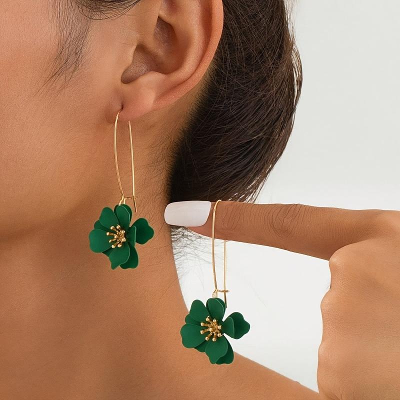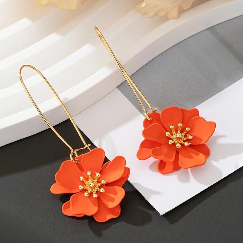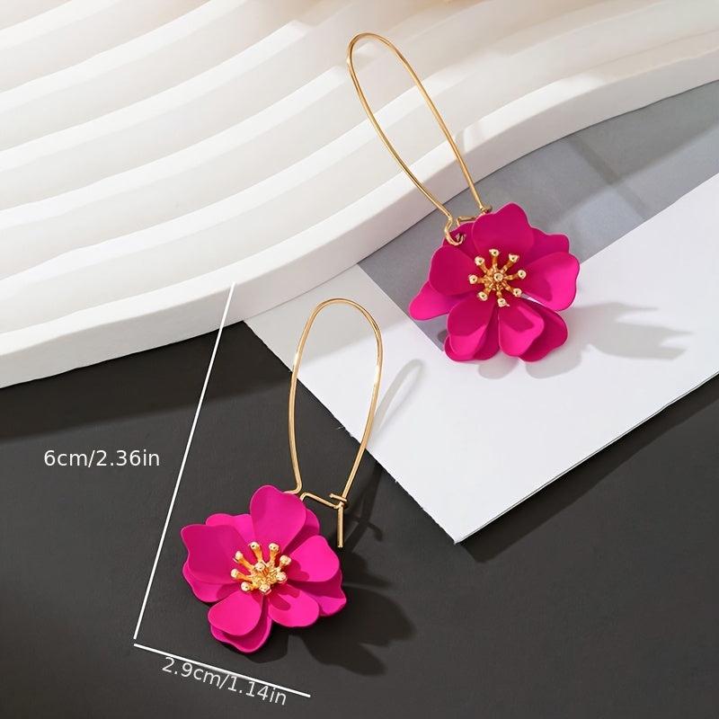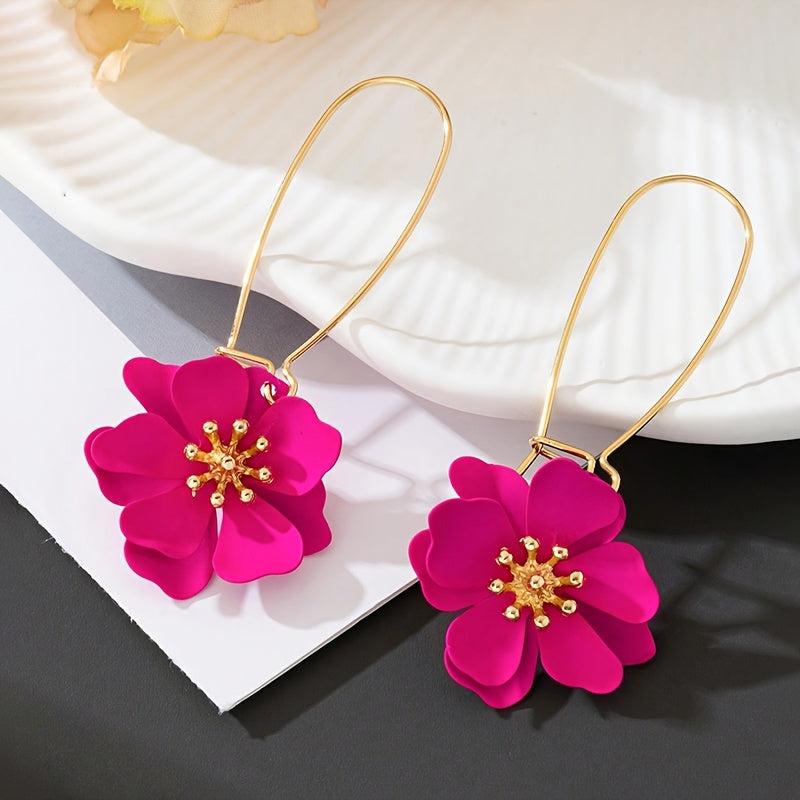 Add a pop of color to your outfit with these vibrant rose red floral drop earrings. The stylish golden tone hook complements the vibrant pink flower dangles, making them perfect for both casual attire and parties.